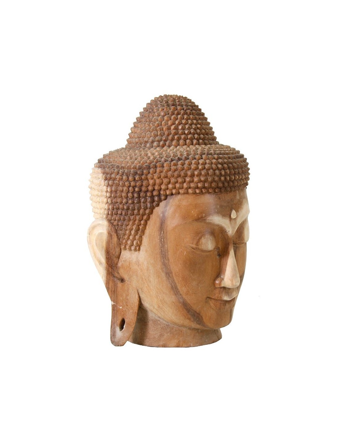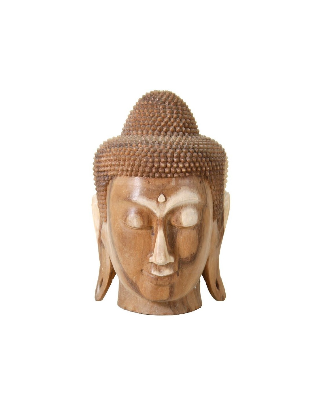 Busto Budha, En Color Natural, De Estilo Oriental. Fabricado En Madera De Acacia.