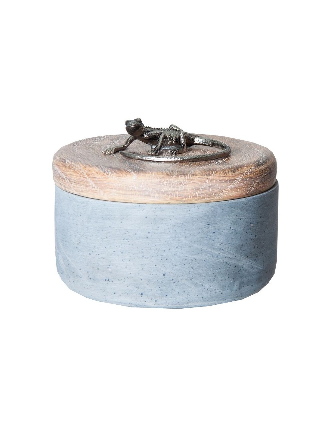 Caja Redondo Lagarto, En Color Gris/Natural, De Estilo Contemporáneo. Fabricado En Resina.