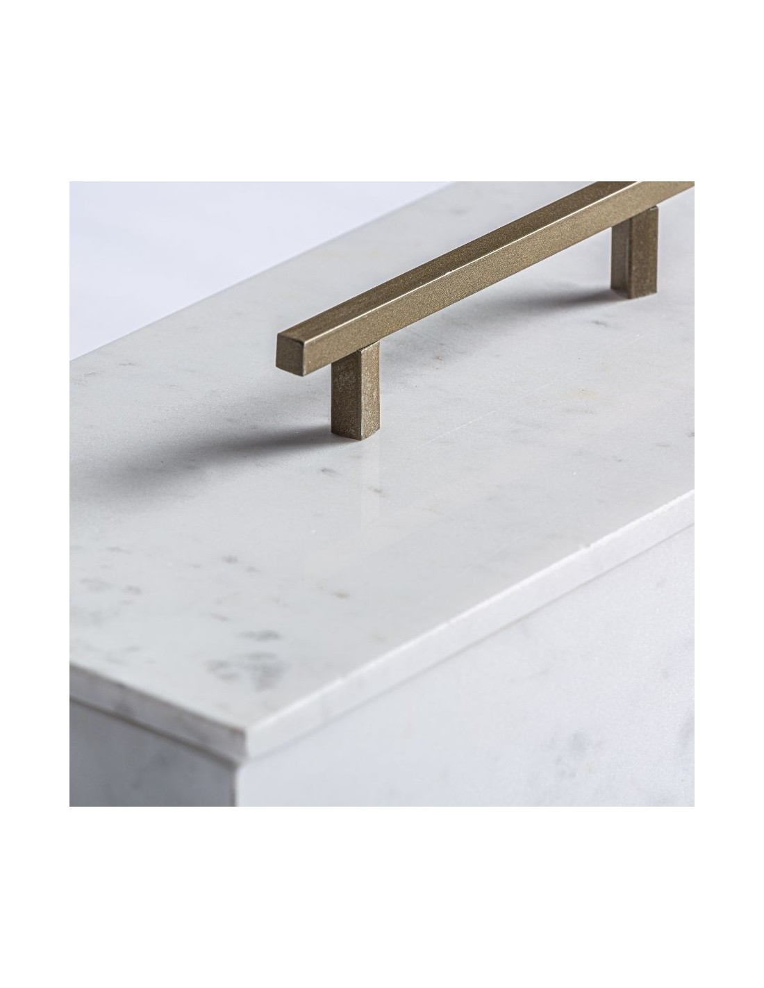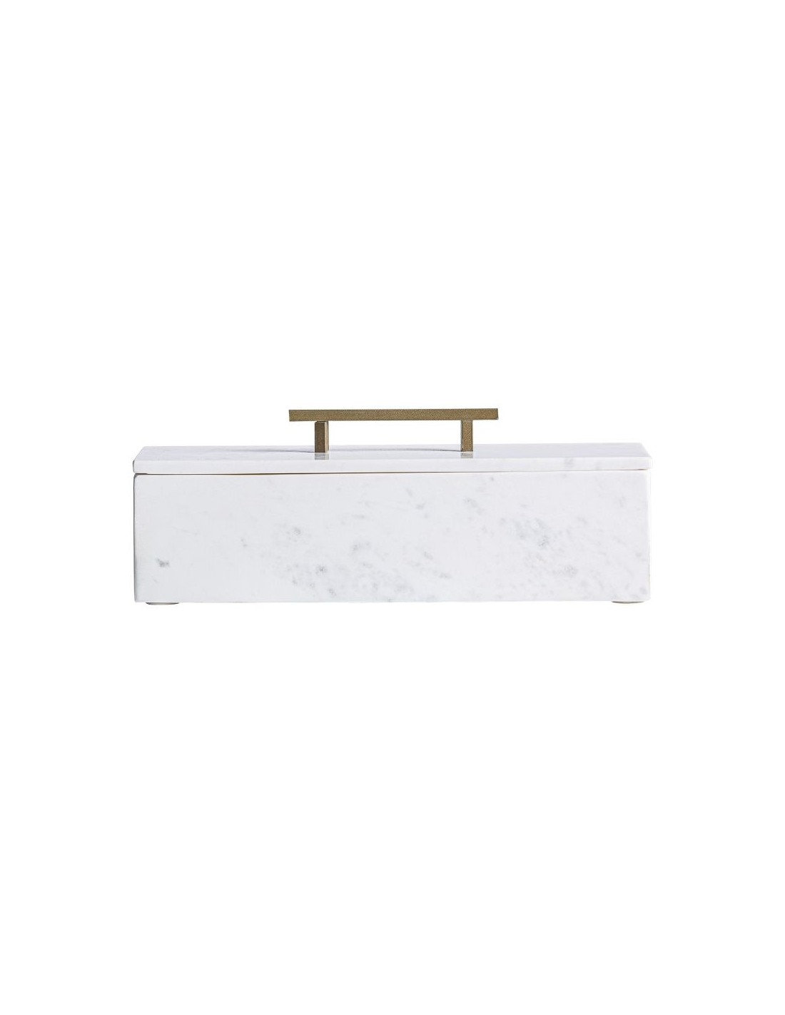 Caja Rectangular Missel, En Color Blanco Brillo, De Estilo Art Deco. Fabricado En Mármol, Combinado Con Latón.