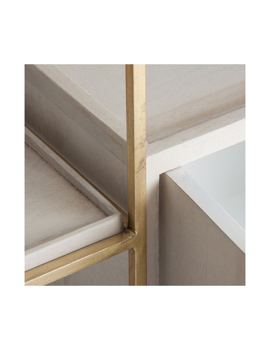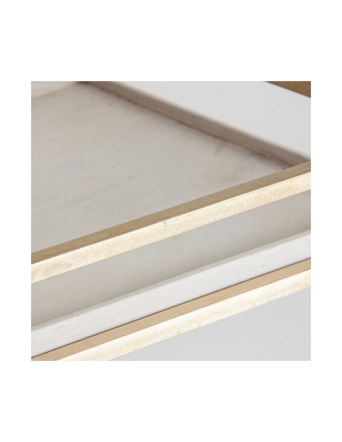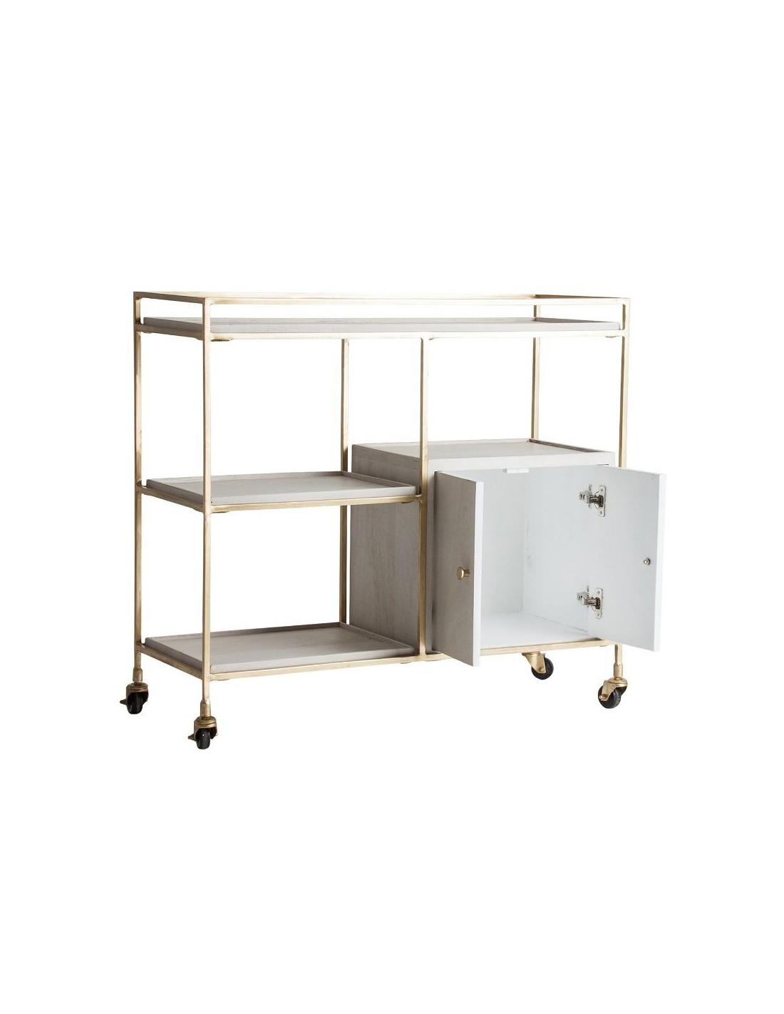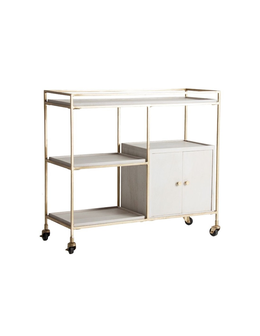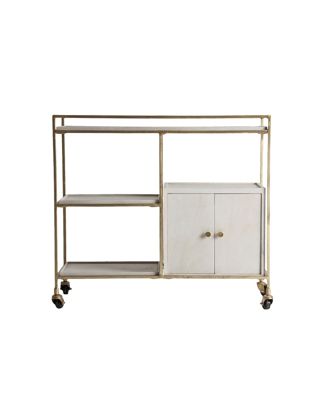 Camarera Rectangular Warta, En Color Blanco/Oro, De Estilo Art Deco. Fabricado En Hierro, Combinado Con Madera De Olmo.