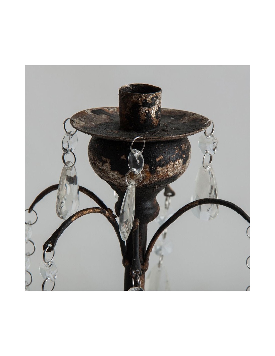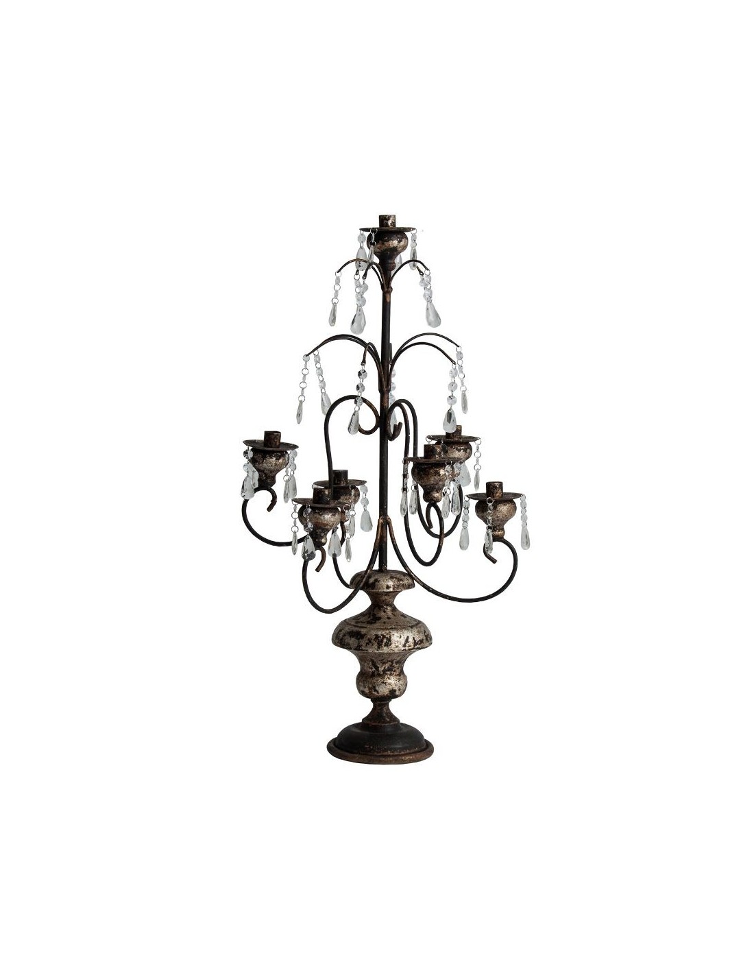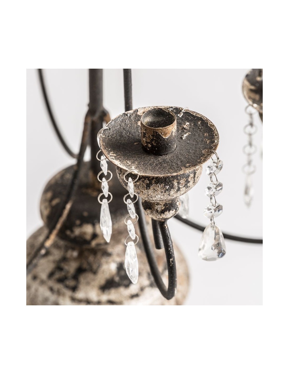 Candelabro, En Color Crema Envejecido, De Estilo Provenzal. Fabricado En Hierro, Combinado Con Acrílico.