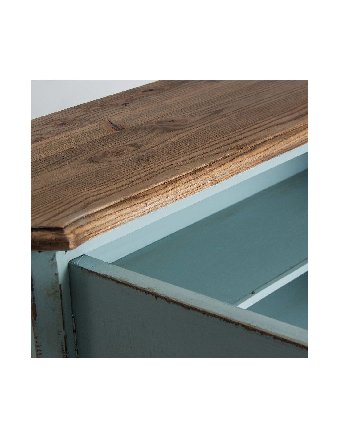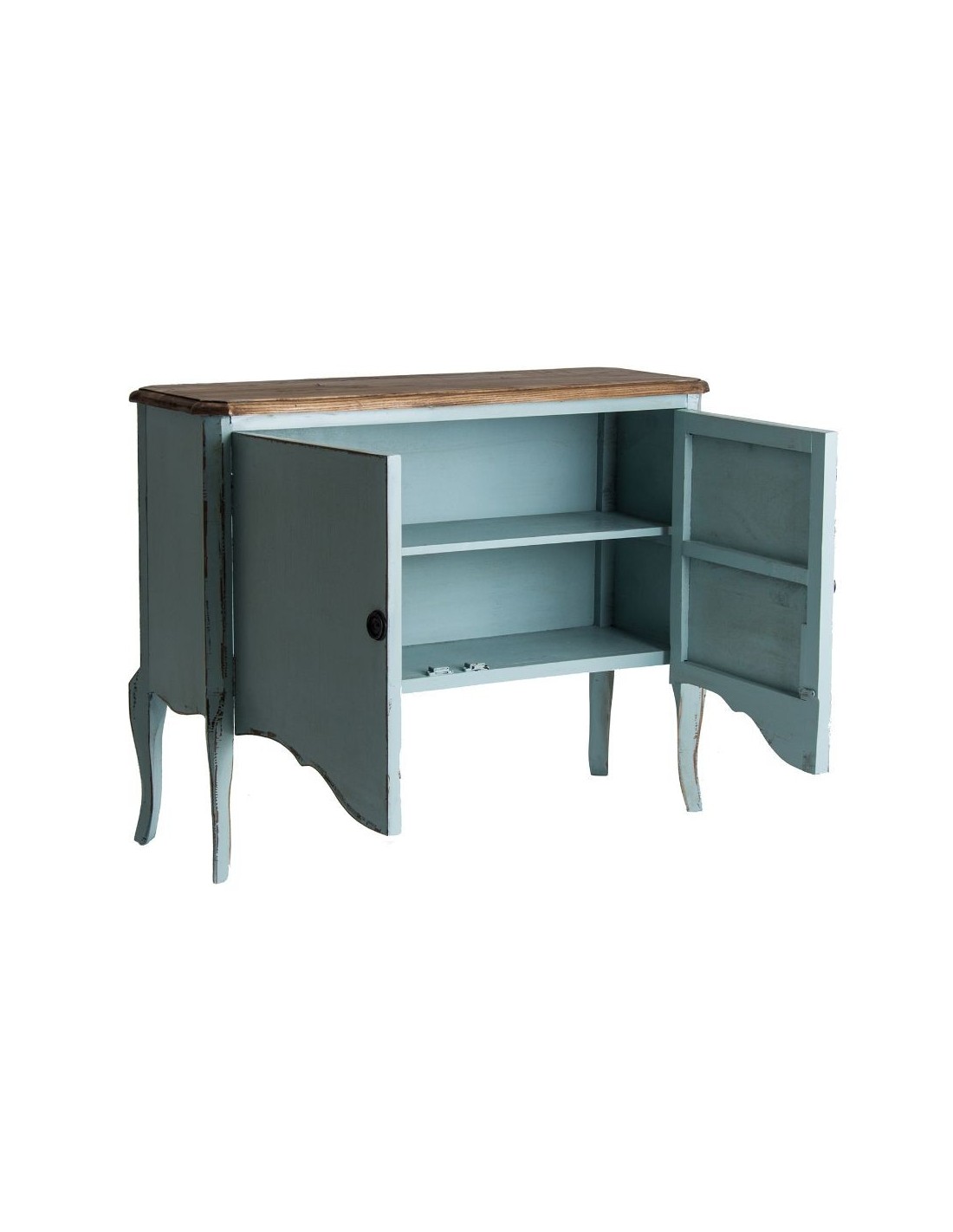 Consola Samari, En Color Azul Cielo, De Estilo Oriental. Fabricado En Madera De Olmo.