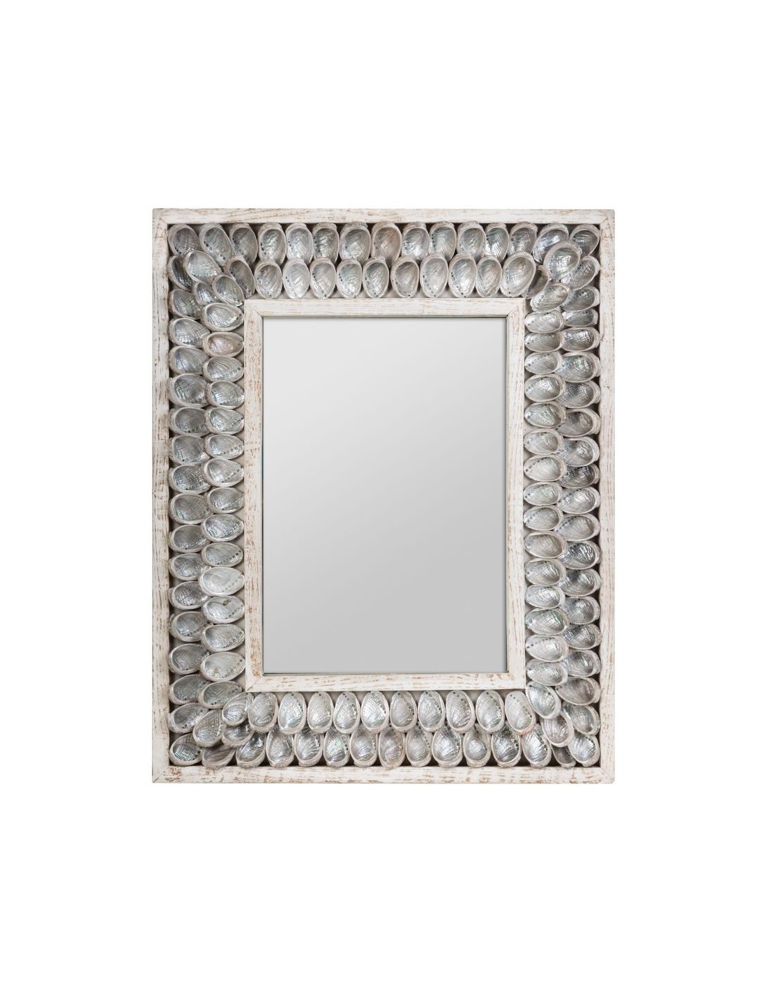 Espejo Rectangular, En Color Gris, De Estilo Nórdico. Fabricado En Cuerda, Combinado Con Concha Y Espejo.