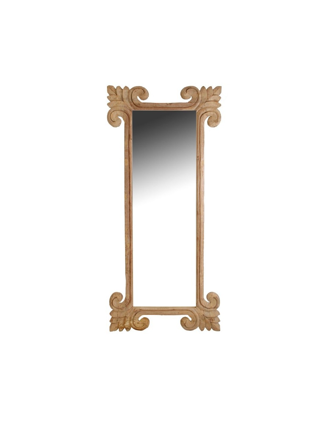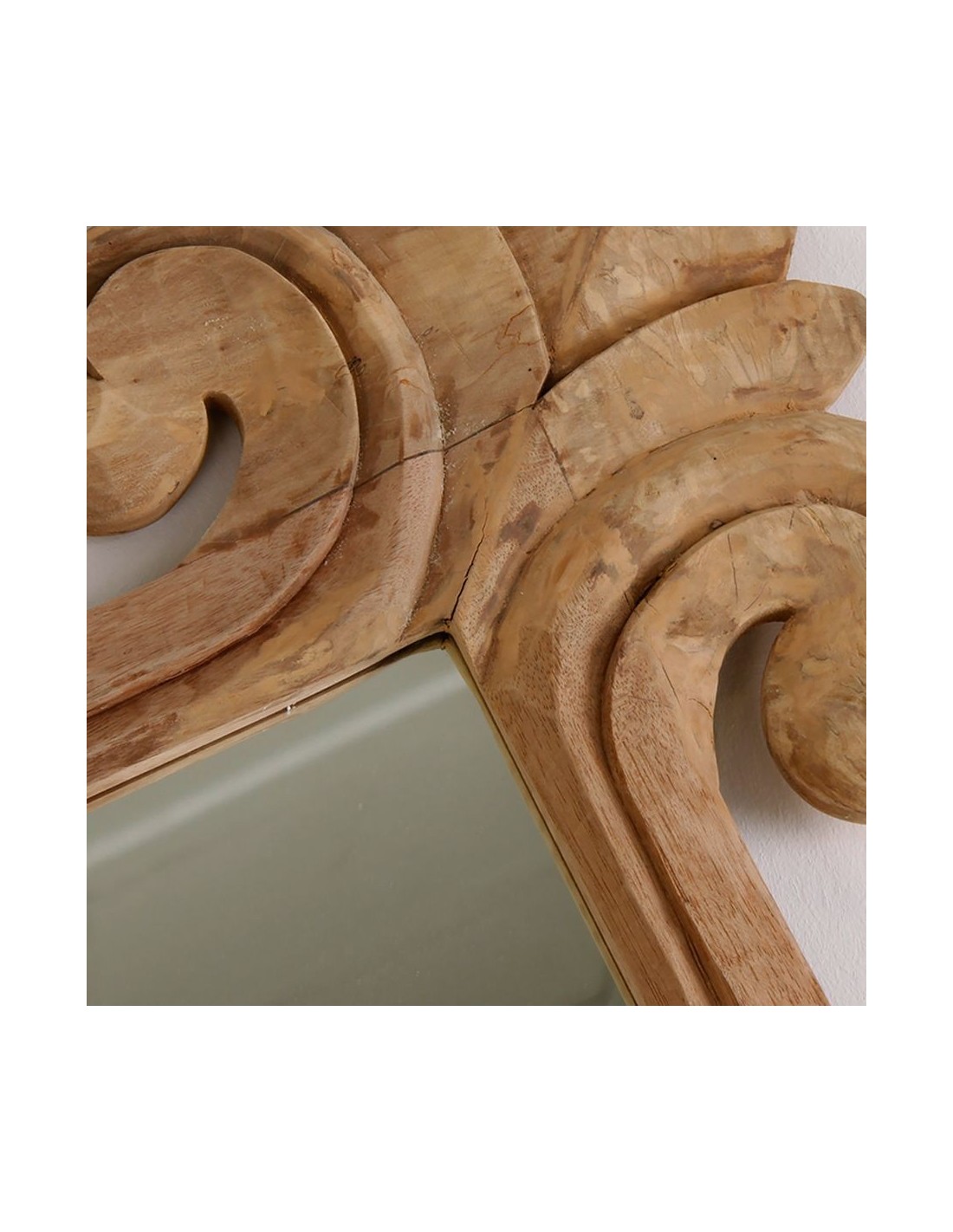 Espejo Rectangular, En Color Natural, De Estilo Colonial. Fabricado En Madera De Teka, Combinado Con Vidrio.