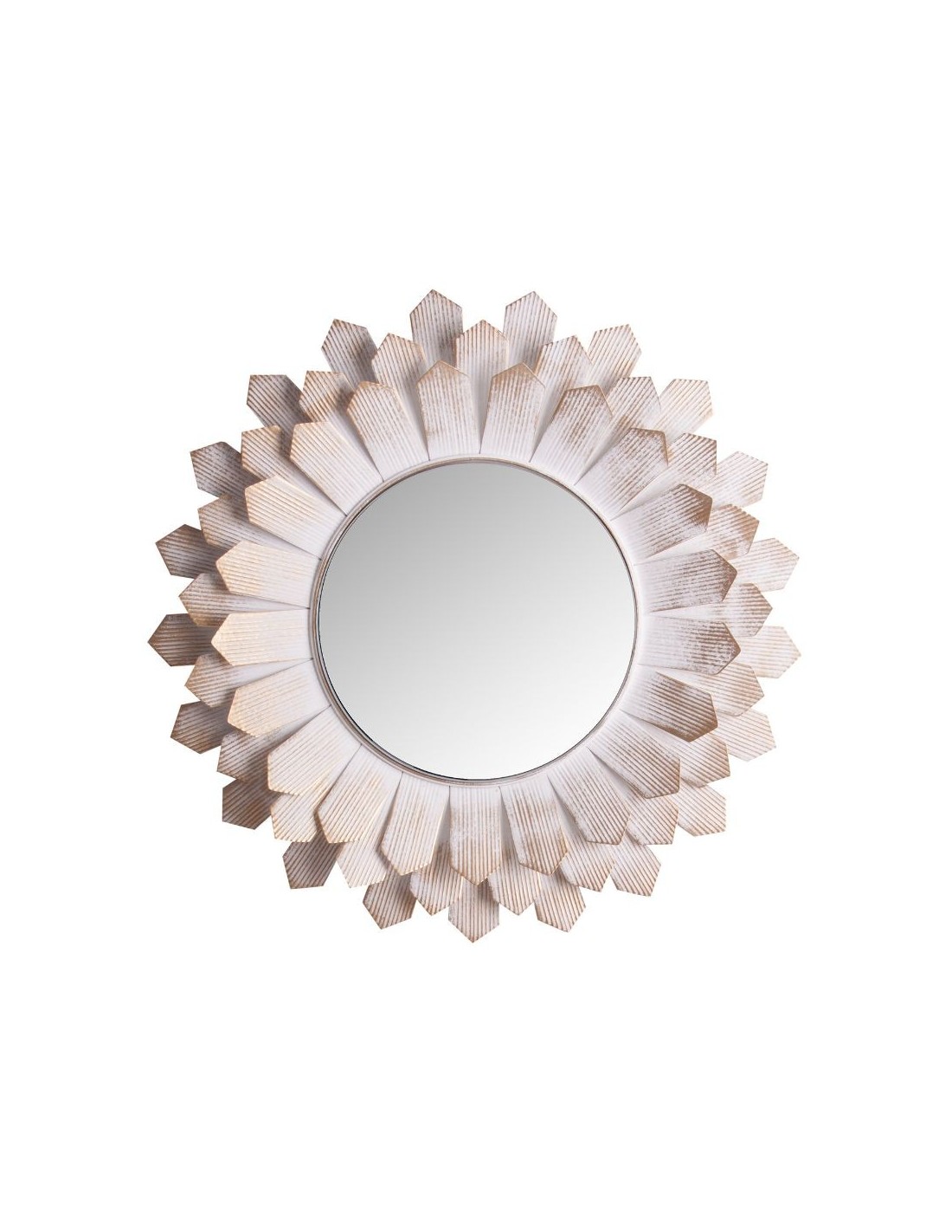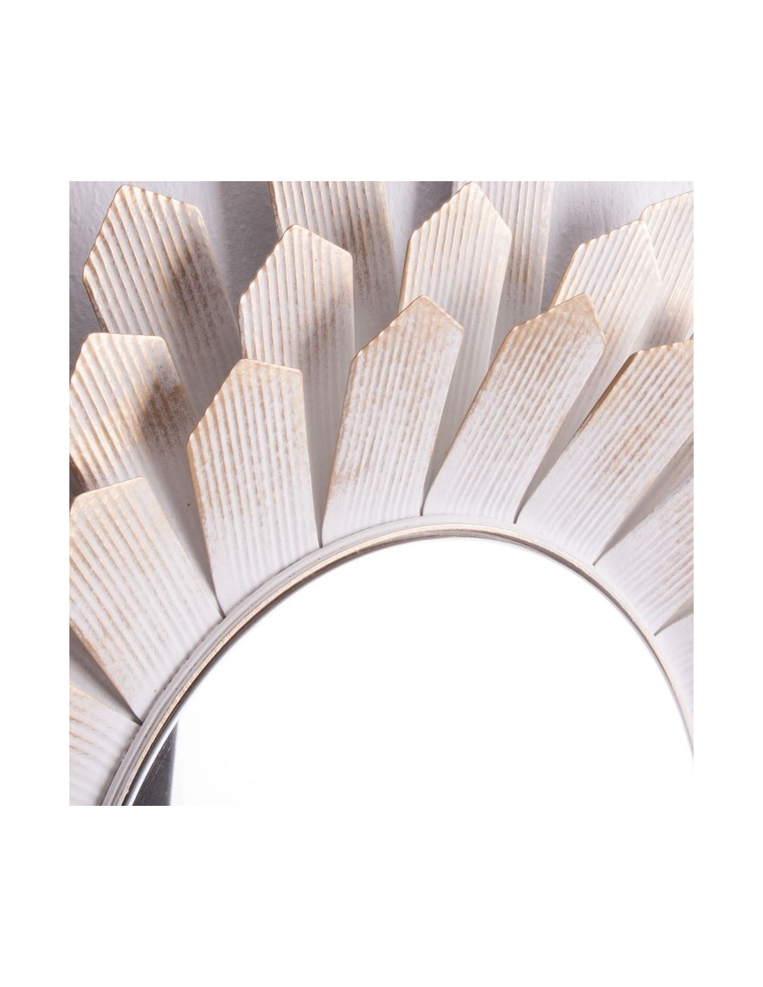 Espejo Redondo, En Color Blanco/Oro, De Estilo Shabby Chic. Fabricado En Hierro, Combinado Con Espejo.