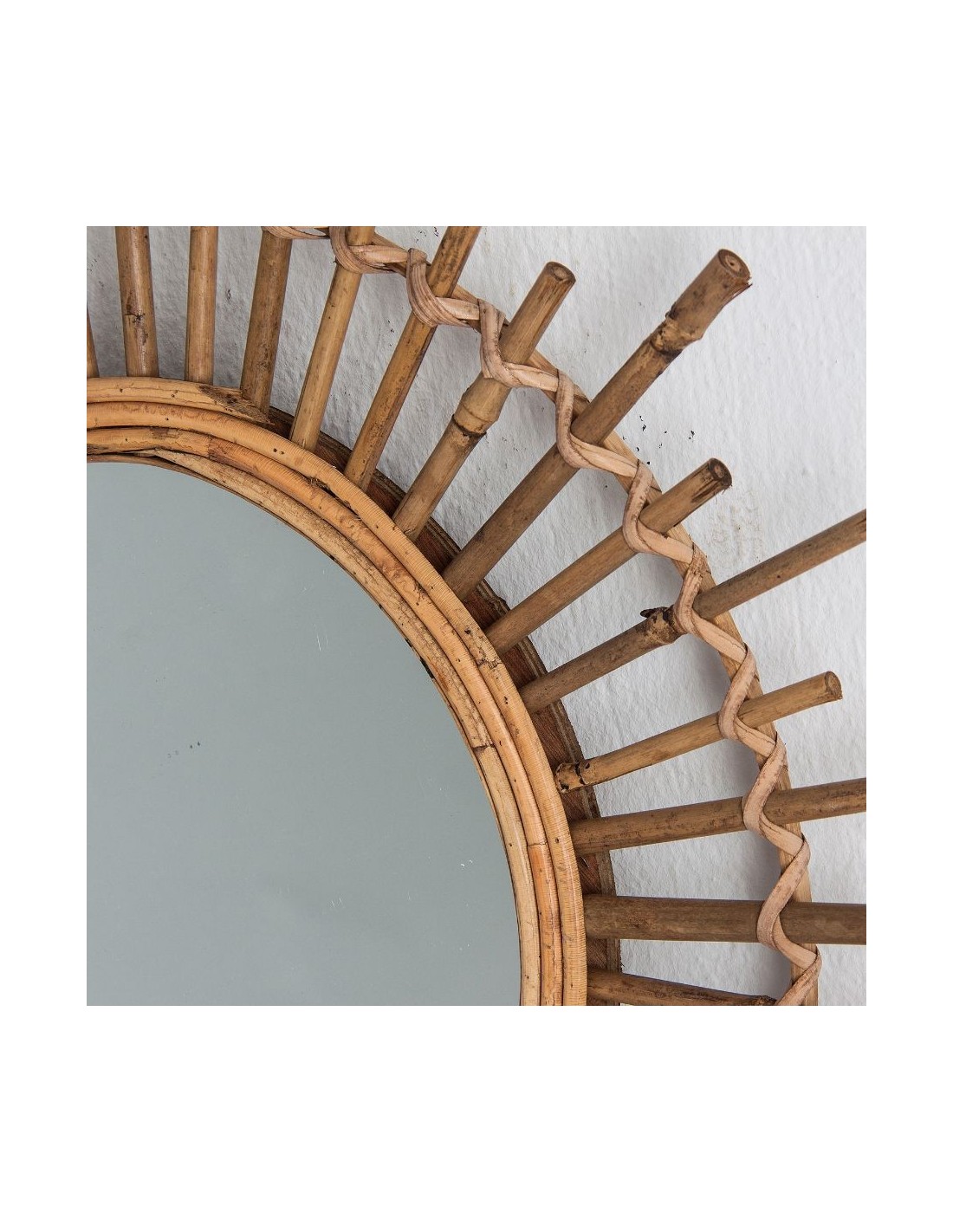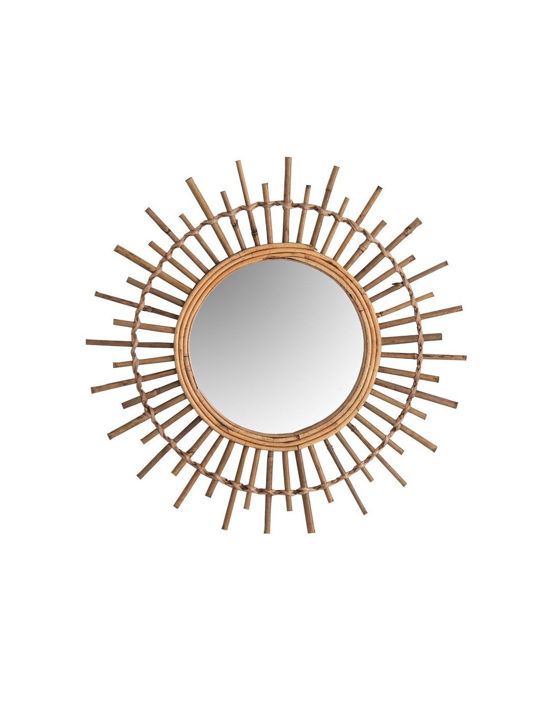 Espejo Redondo, En Color Natural, De Estilo Contemporáneo. Fabricado En Bambú, Combinado Con Espejo.