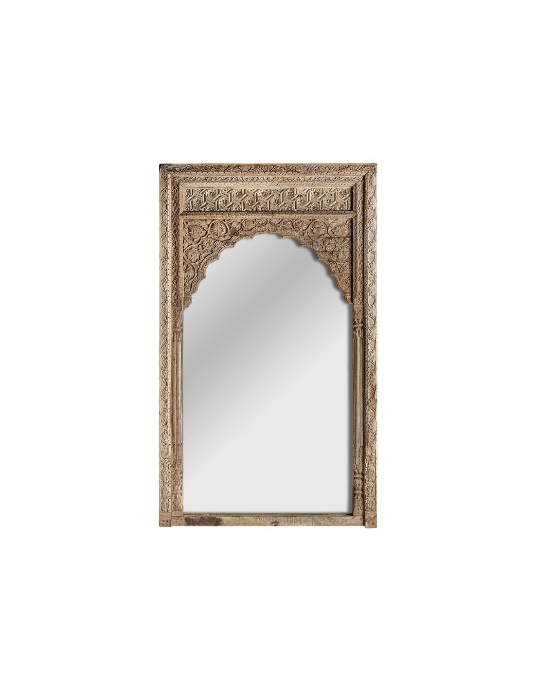 Espejo, En Color Natural Envejecido, De Estilo Étnico. Fabricado En Madera De Teka, Combinado Con Espejo. Puede Variar De Color Forma Y Tamaño Ya Que Se Trata De Una Pieza Artesanal.