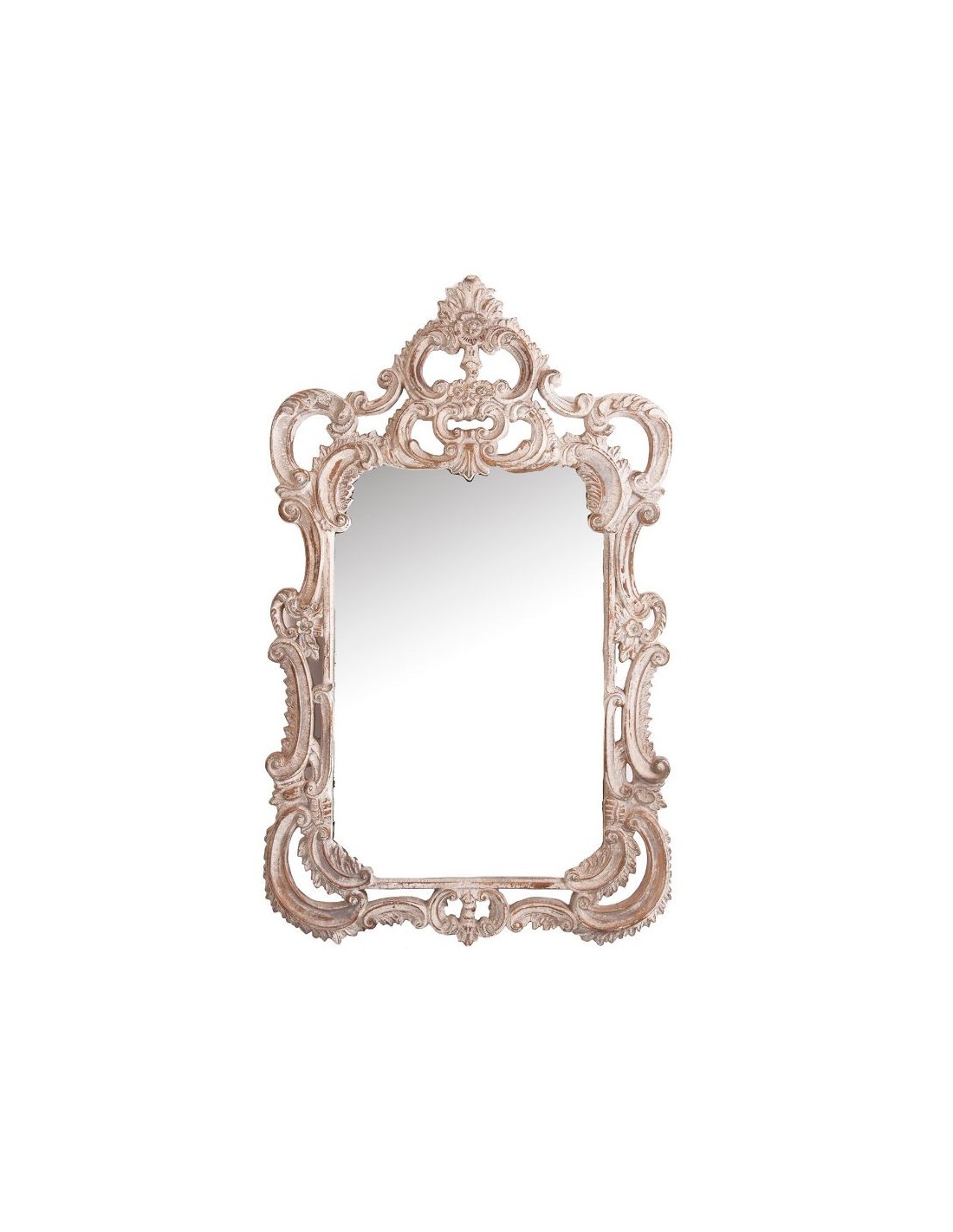 Espejo Milvignes, En Color Blanco Roto Envejecido, De Estilo Provenzal. Fabricado En Resina, Combinado Con Espejo.