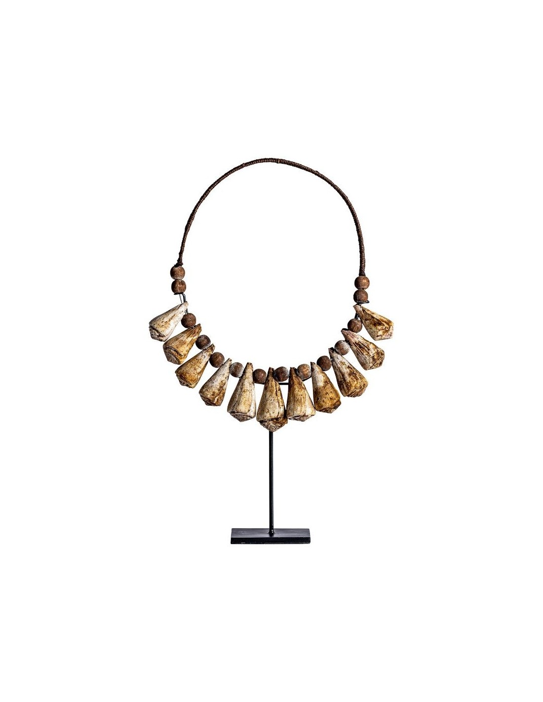 Figura Decorativa Redonda, En Color Marrón, De Estilo Étnico. Fabricado En Concha, Combinado Con Hierro. Producto Desmontable.