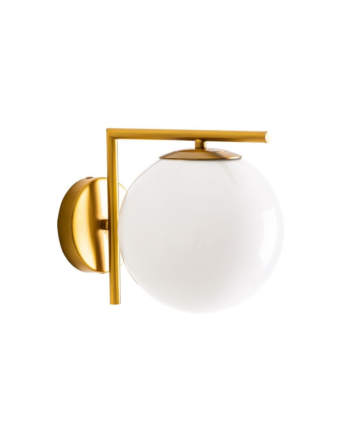 Lámpara De Pared Bola, En Color Blanco/Oro, De Estilo Art Deco. Fabricado En Latón, Combinado Con Cristal.