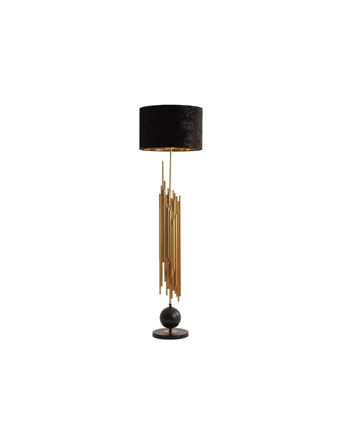 Lámpara De Pie, En Color Negro/Oro, De Estilo Clásico. Fabricado En Hierro, Combinado Con Poliéster.