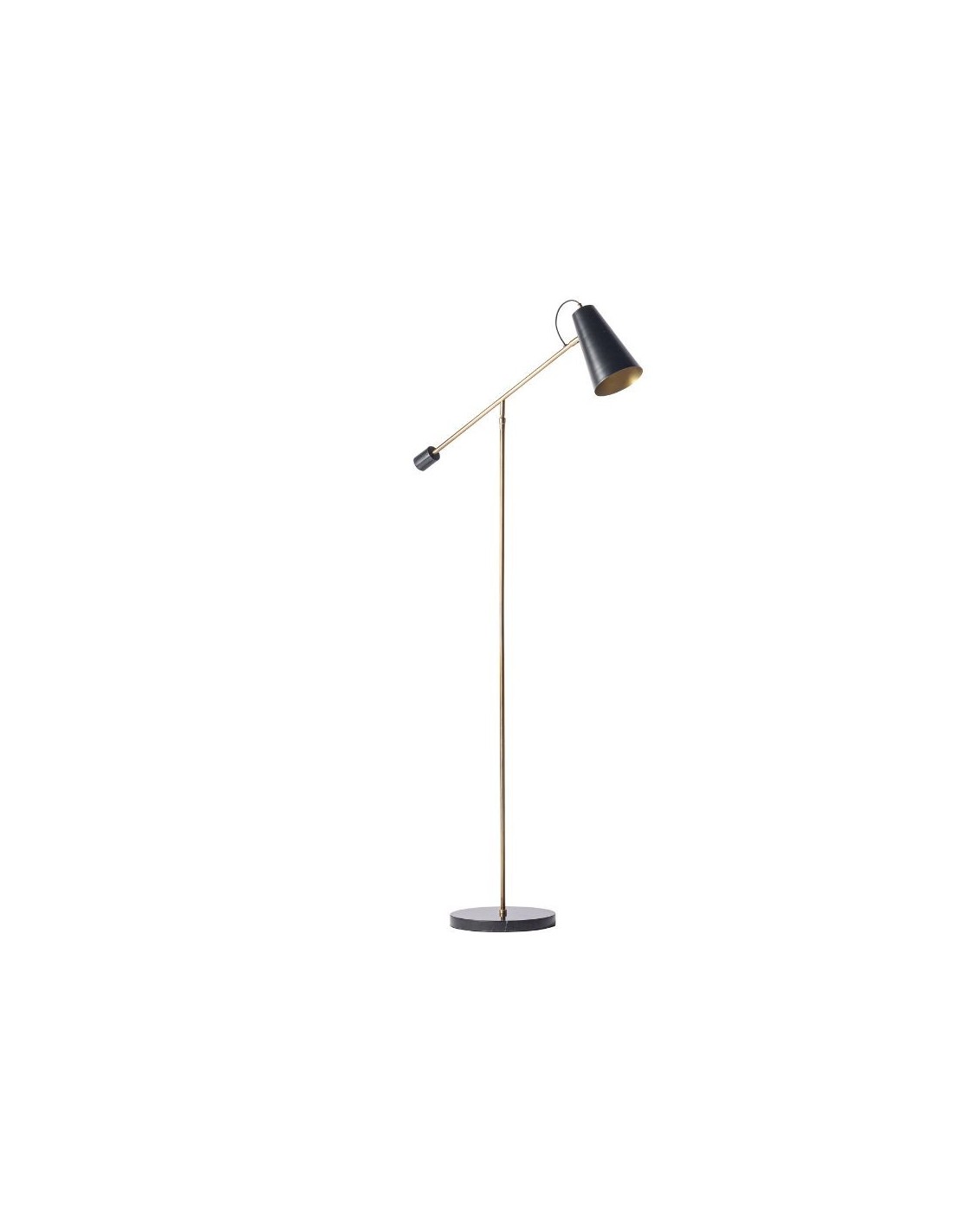 Lámpara De Pie, En Color Negro/Oro, De Estilo Art Deco. Fabricado En Hierro, Combinado Con Latón.