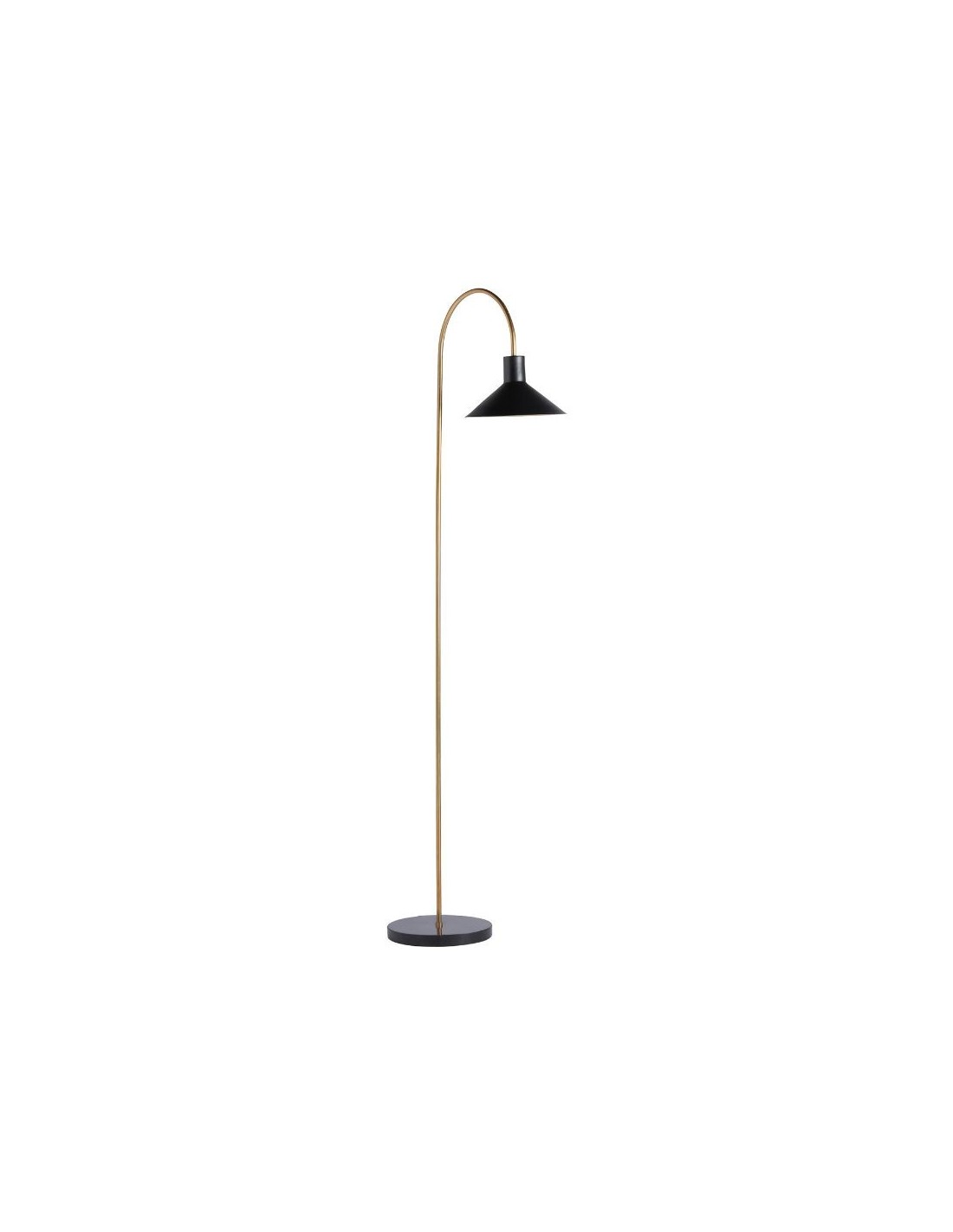 Lámpara De Pie, En Color Oro/Negro, De Estilo Art Deco. Fabricado En Hierro, Combinado Con Mármol.