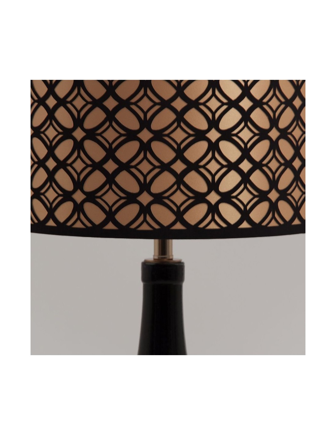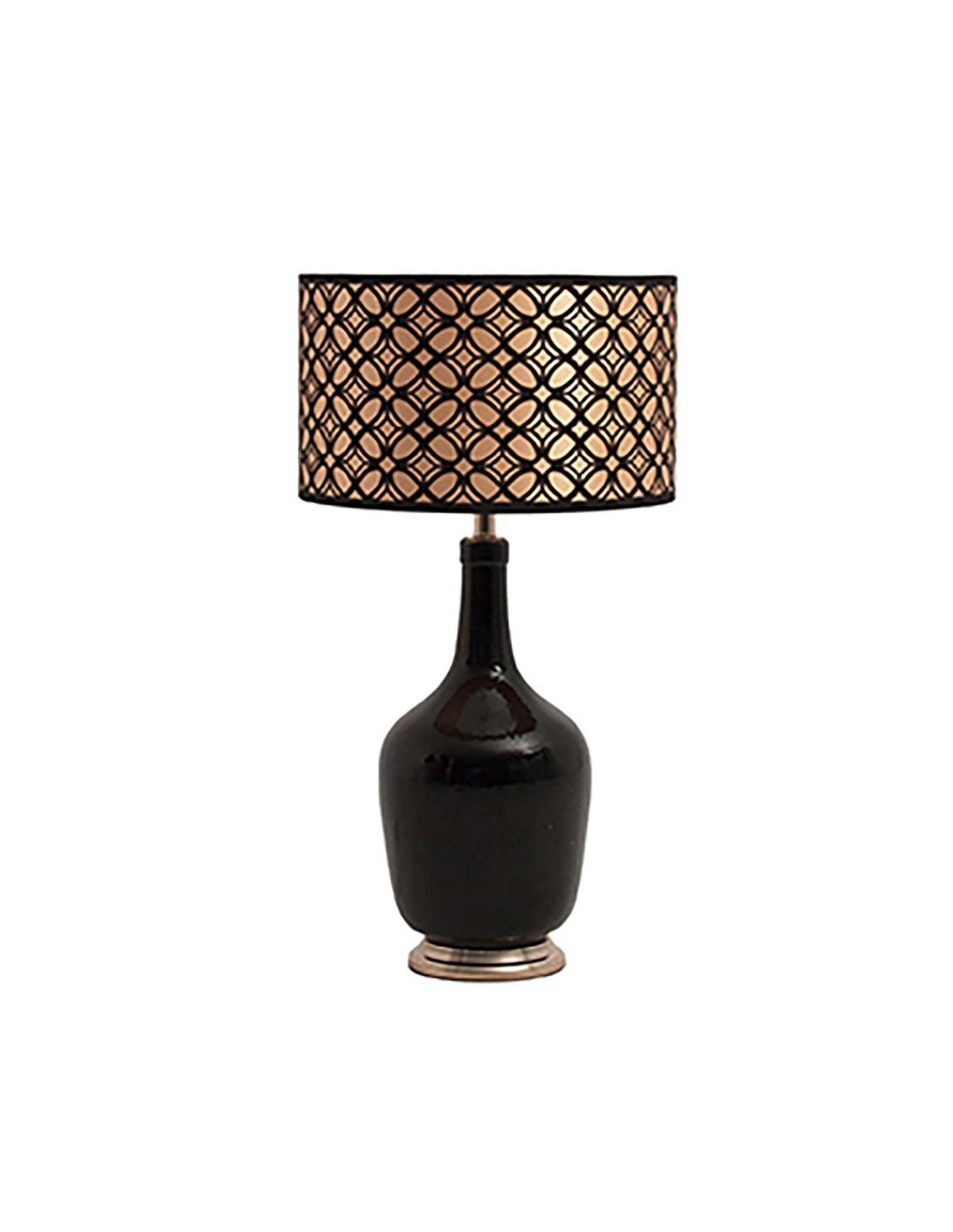 Lámpara De Sobremesa, En Color Negro/Oro Brillo, De Estilo Art Deco. Fabricado En Hierro, Combinado Con Vidrio. Pantalla: Seda / Satén Brillante. Producto Desmontable.