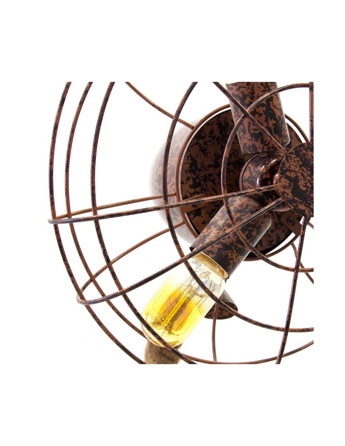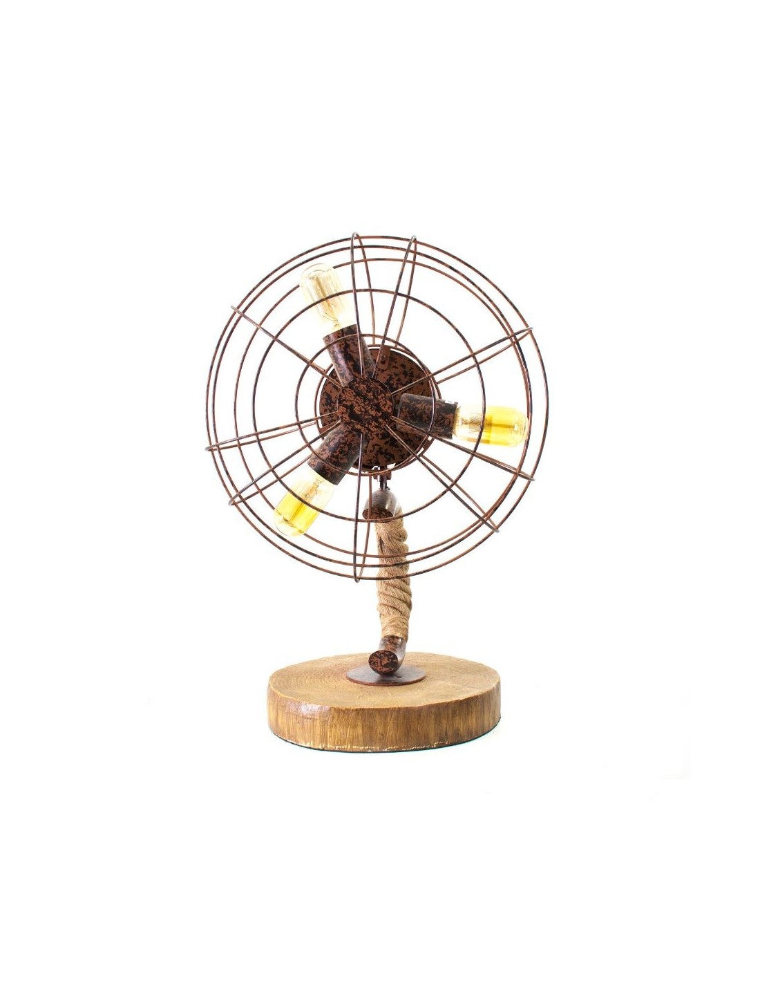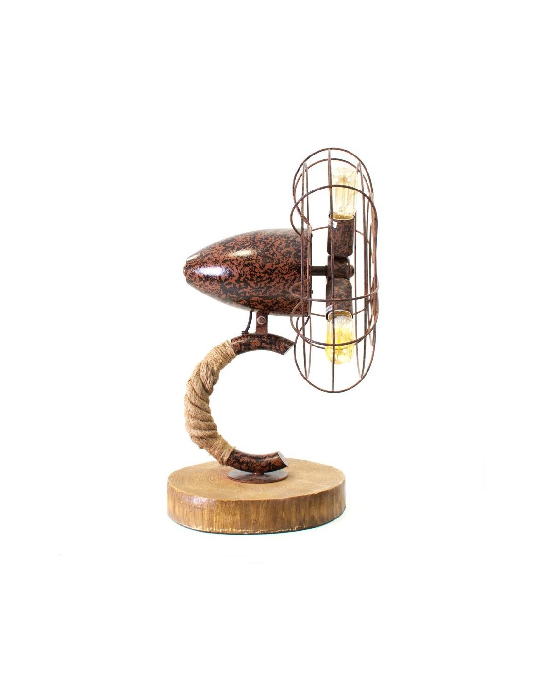 Lámpara De Sobremesa, En Color Natural Envejecido, De Estilo Industrial. Fabricado En Acero, Combinado Con Cuerda Y Fibra De Vidrio.