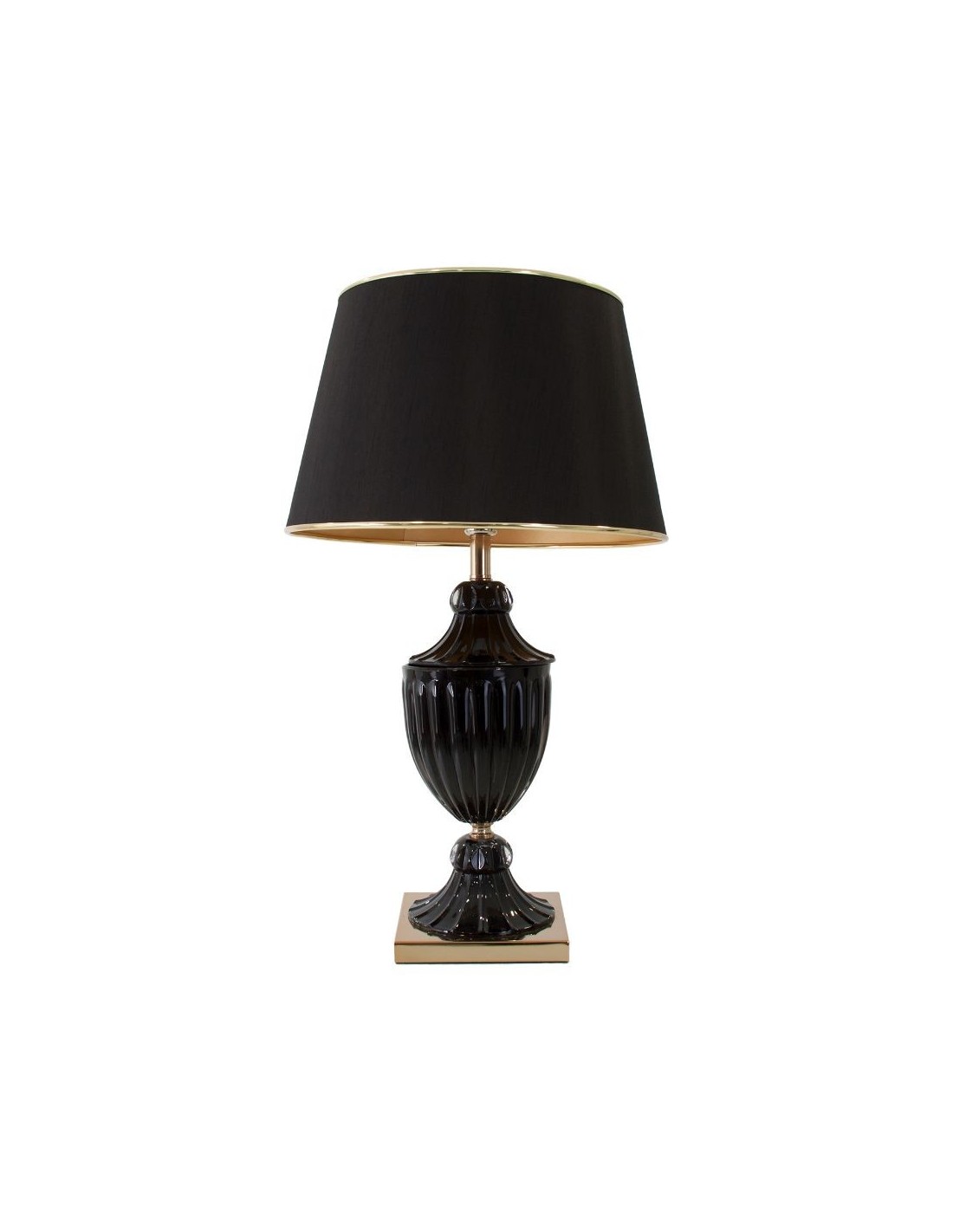Lámpara De Sobremesa, En Color Negro/Oro, De Estilo Clásico. Fabricado En Hierro, Combinado Con Vidrio Y Poliéster.