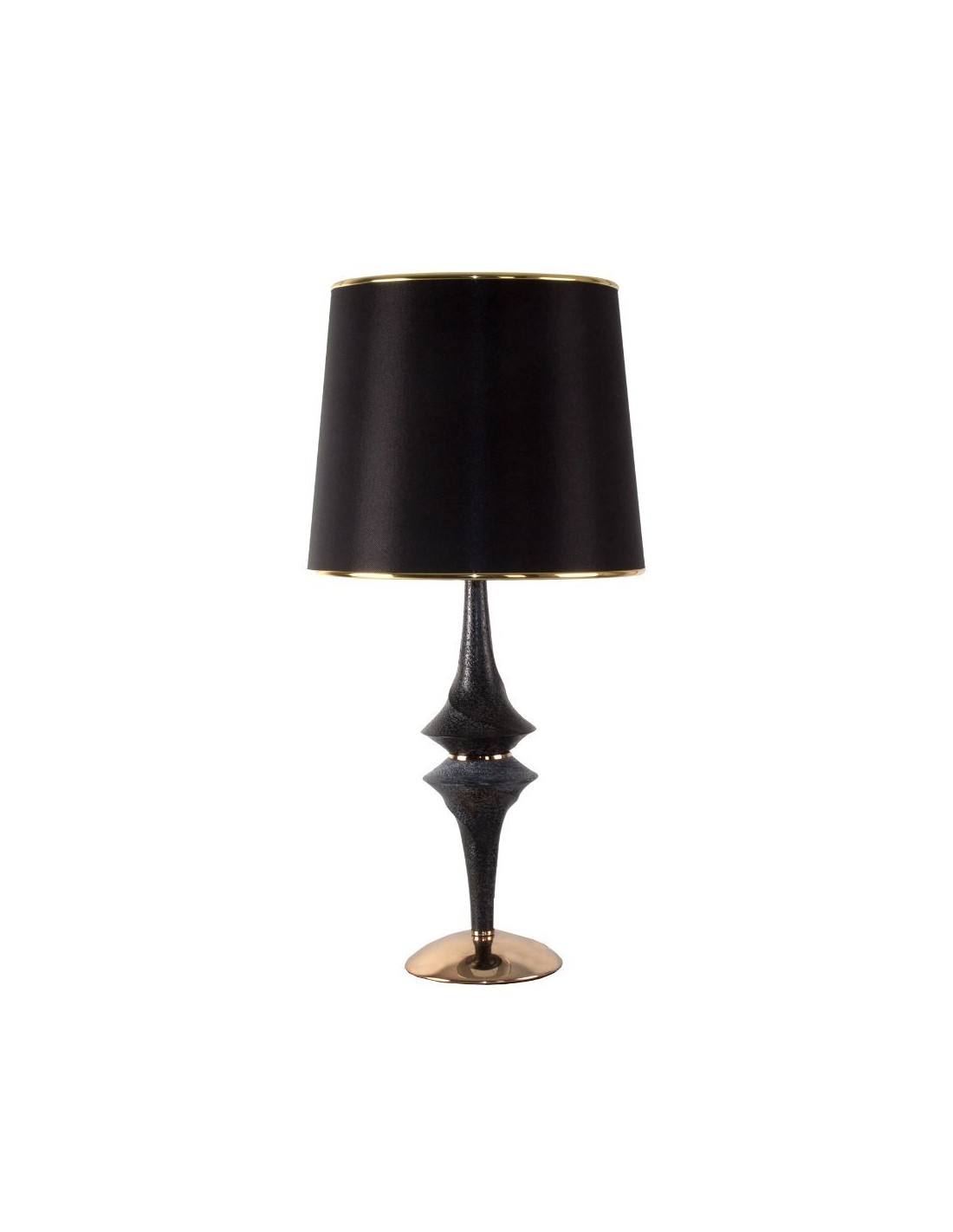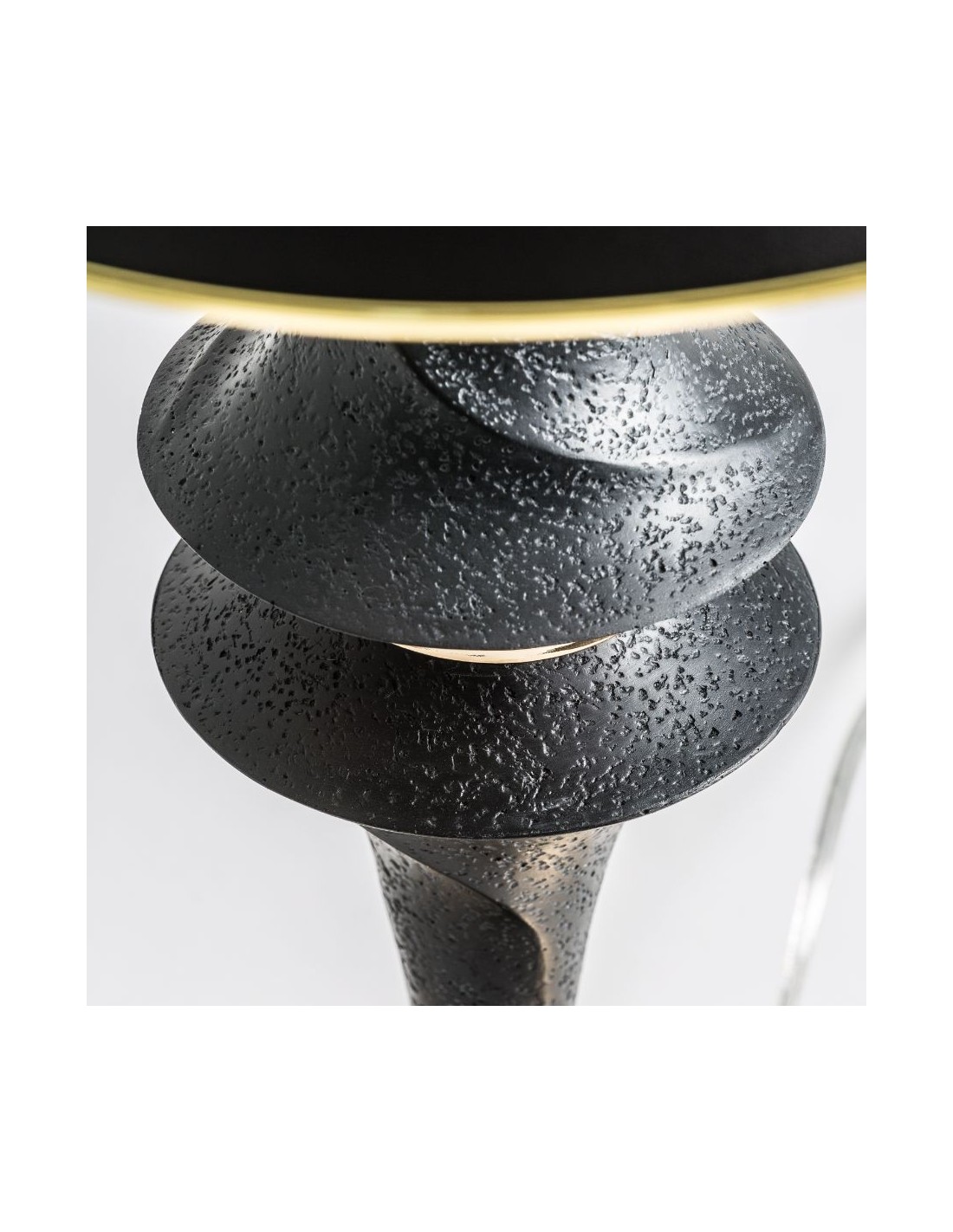 Lámpara De Sobremesa, En Color Negra Mate, De Estilo Art Deco. Fabricado En Hierro, Combinado Con Poliéster Y Resina.