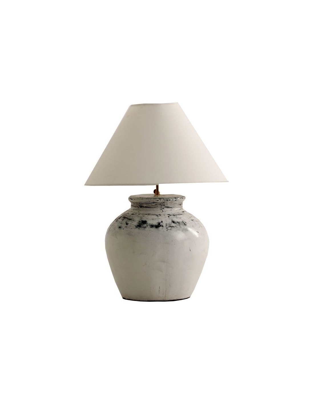 Lámpara De Sobremesa, En Color Blanco Envejecido, De Estilo Shabby Chic. Fabricado En Terracota.