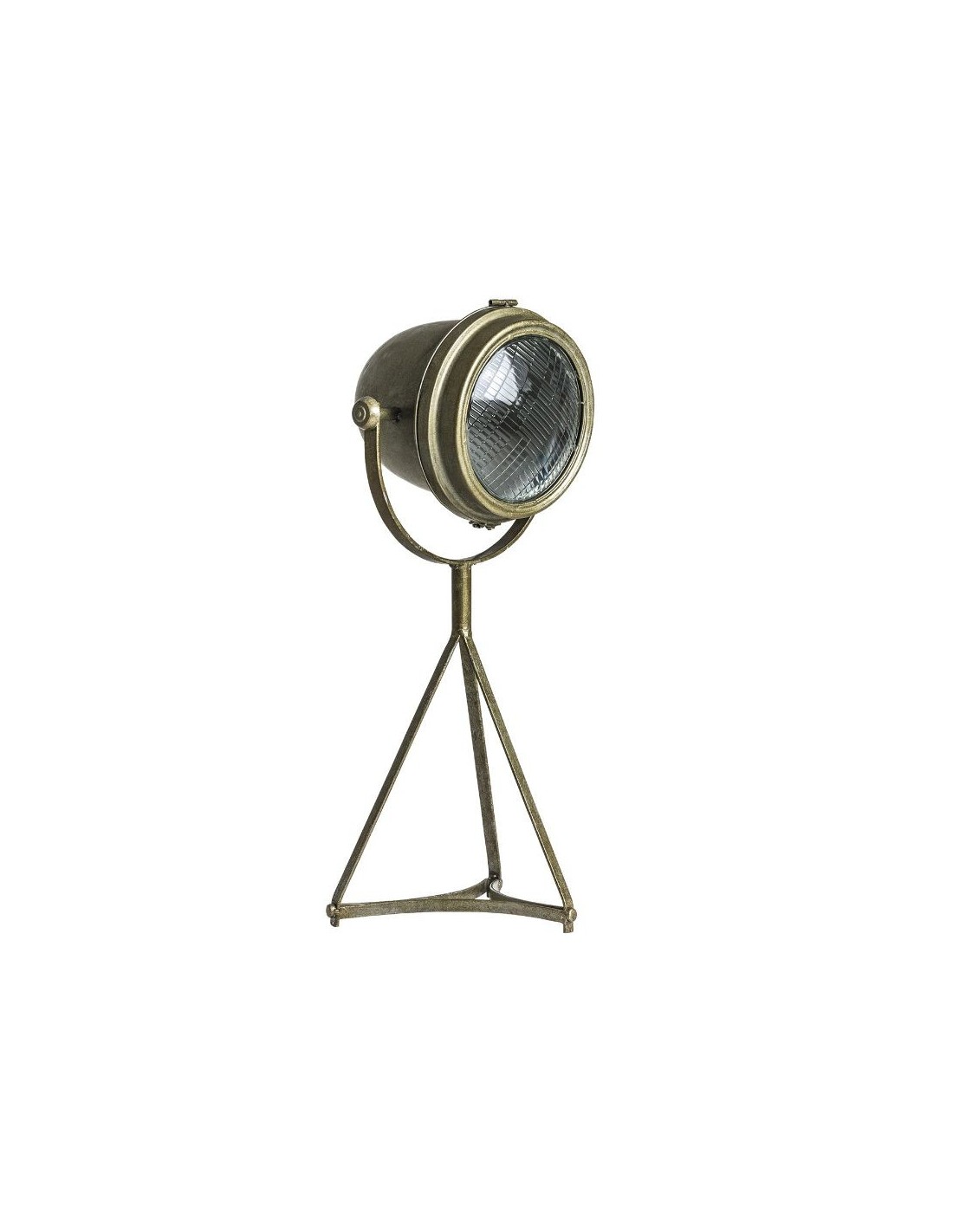 Lámpara De Sobremesa, En Color Oro Patina, De Estilo Industrial. Fabricado En Hierro.