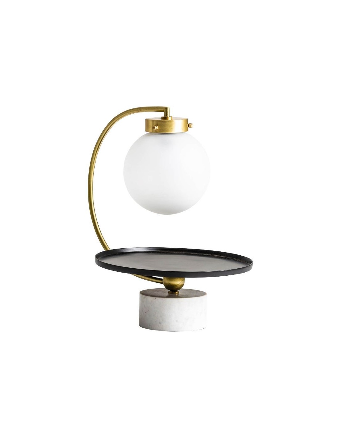 Lámpara De Sobremesa, En Color Oro/Negro, De Estilo Art Deco. Fabricado En Mármol, Combinado Con Vidrio.