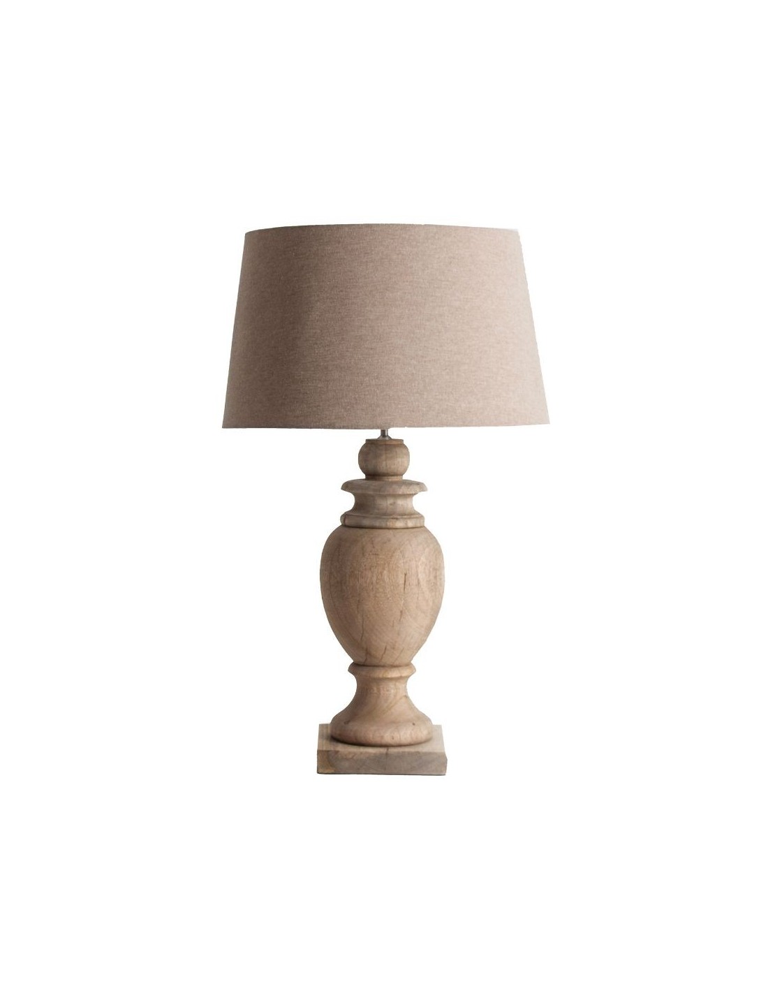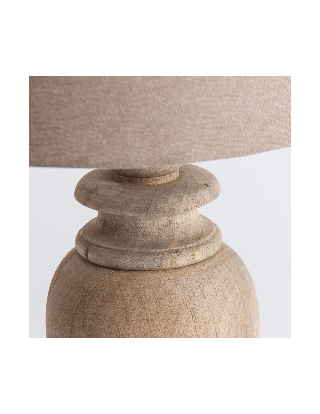 Lámpara De Sobremesa, En Color Natural, De Estilo Provenzal. Fabricado En Madera De Mango, Combinado Con Algodón.