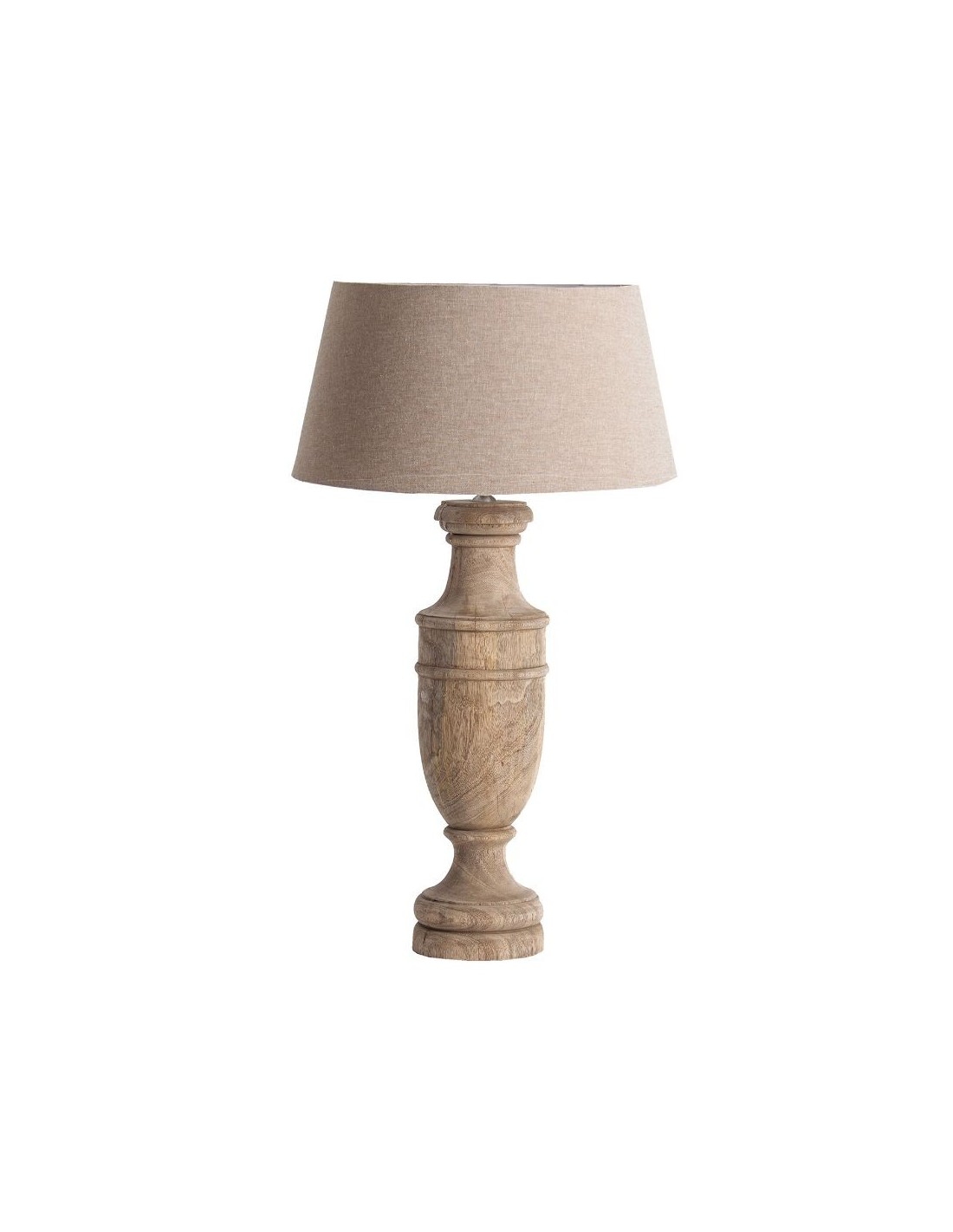 Lámpara De Sobremesa, En Color Natural, De Estilo Provenzal. Fabricado En Madera De Mango, Combinado Con Algodón.