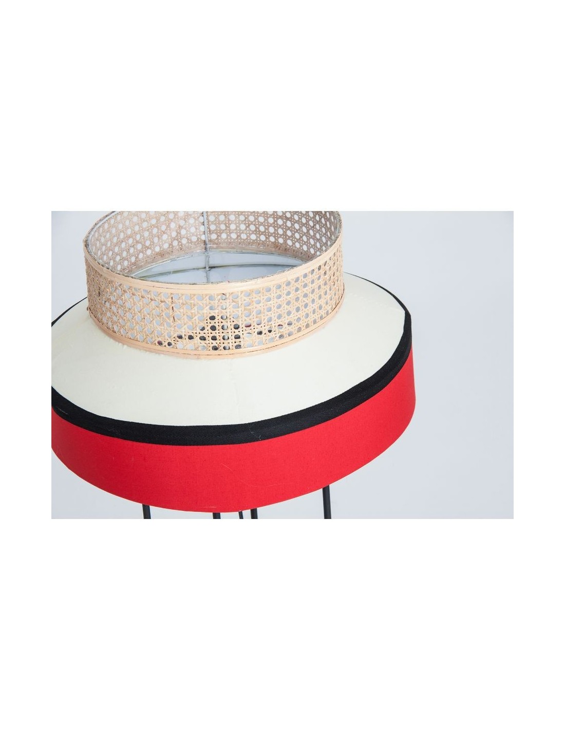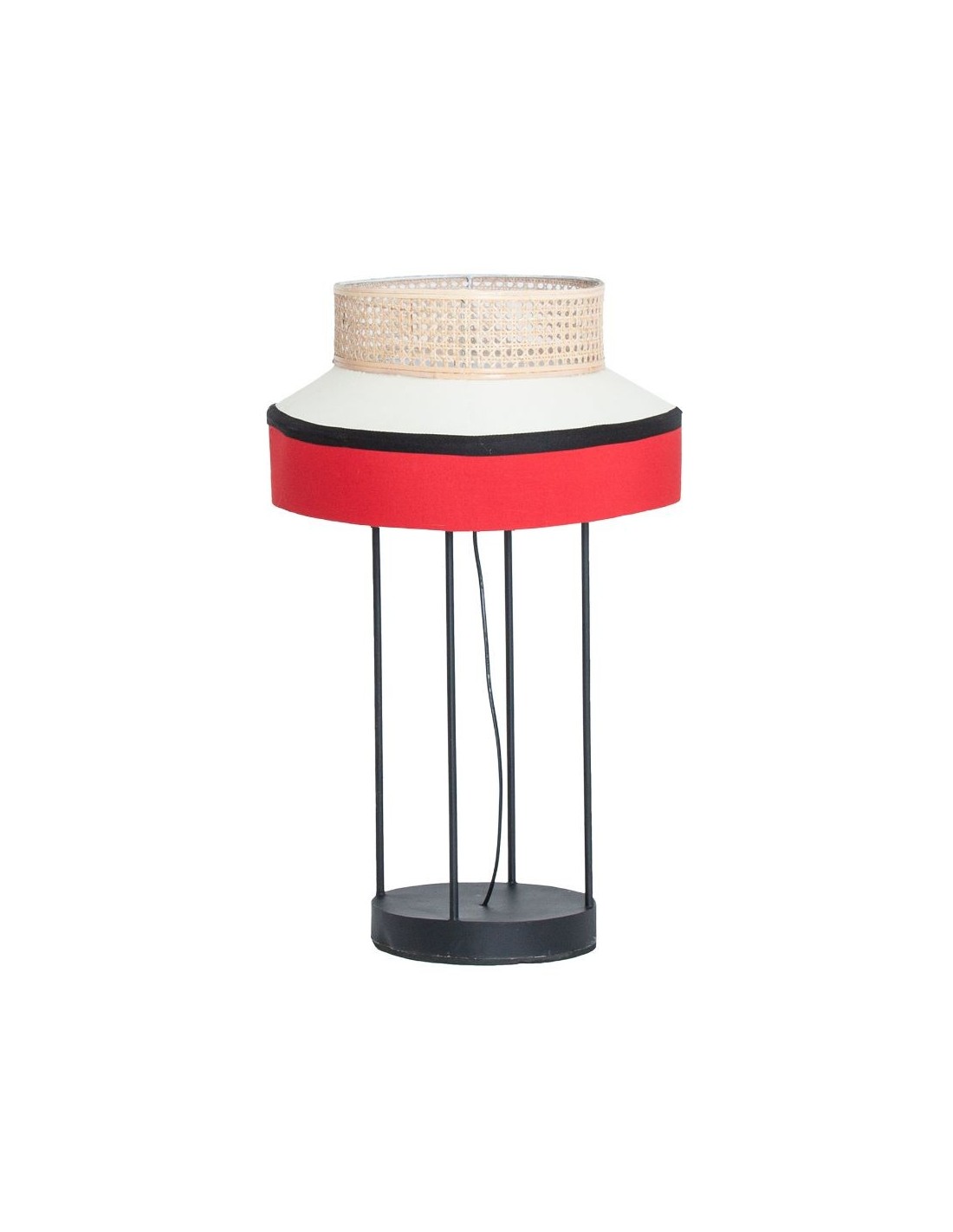 Lámpara De Sobremesa, En Color Blanco/Rojo, De Estilo Kitsh. Fabricado En Ratán, Combinado Con Algodón Y Hierro.