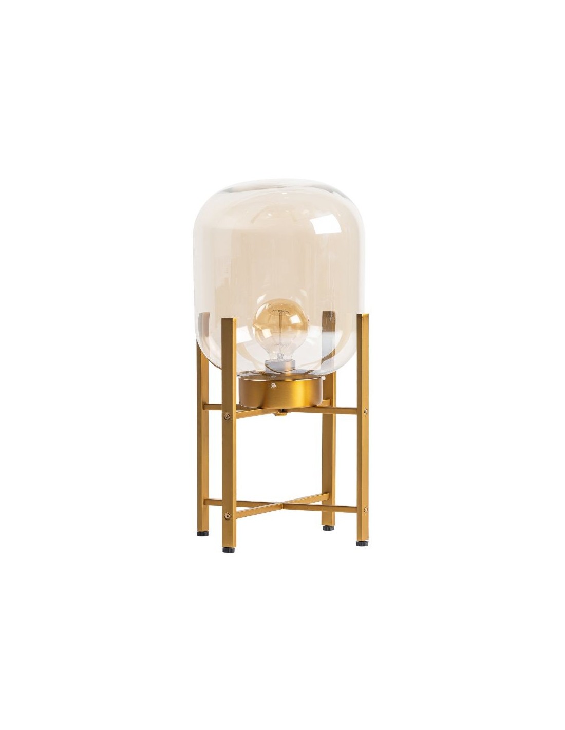 Lámpara De Sobremesa, En Color Oro, De Estilo Art Deco. Fabricado En Latón, Combinado Con Cristal. Producto Desmontable.