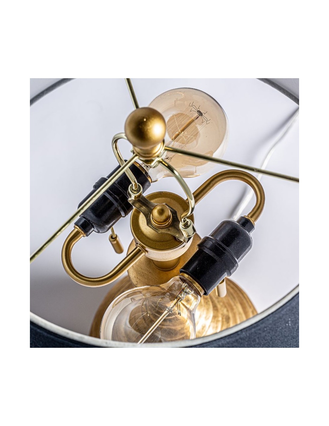 Lámpara De Sobremesa, En Color Oro/Negro, De Estilo Art Deco. Fabricado En Hierro, Combinado Con Resina Y Lino. Producto Desmontable.