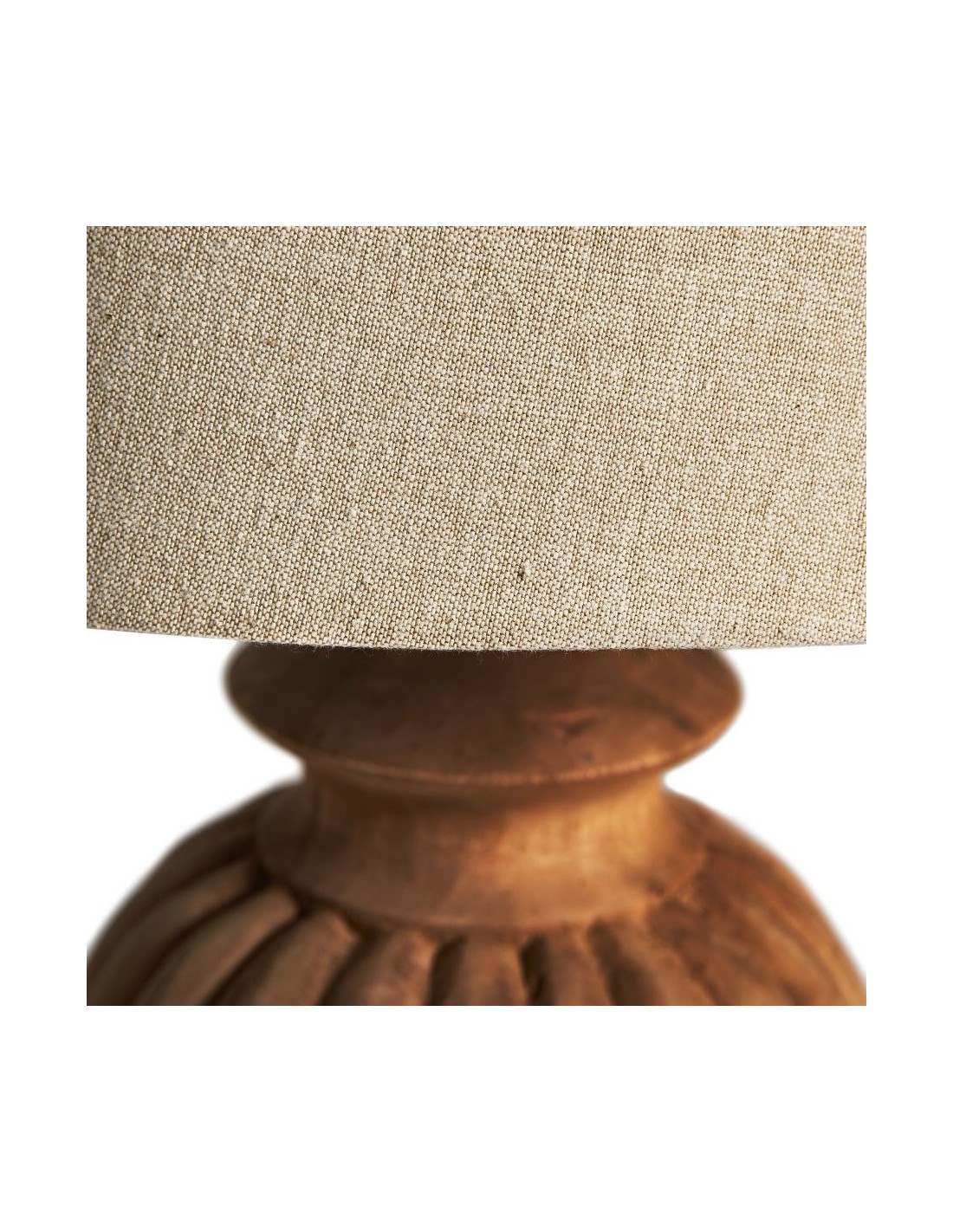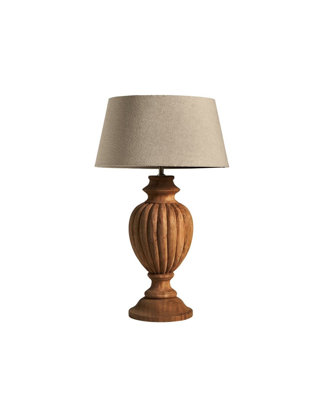 Lámpara De Sobremesa, En Color Natural Decapado, De Estilo Provenzal. Fabricado En Madera De Mango, Combinado Con Algodón.