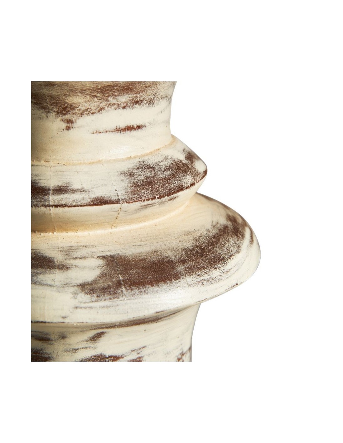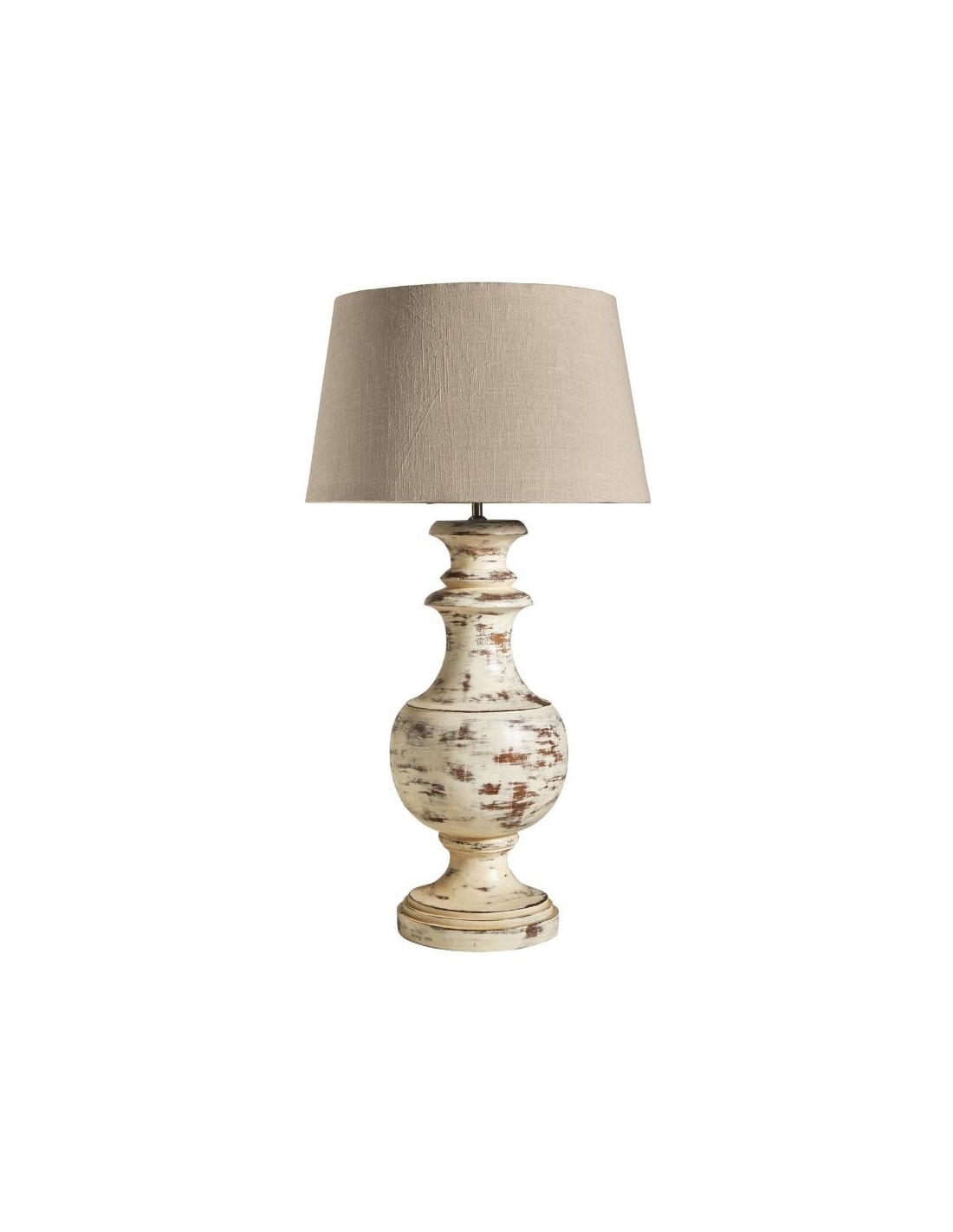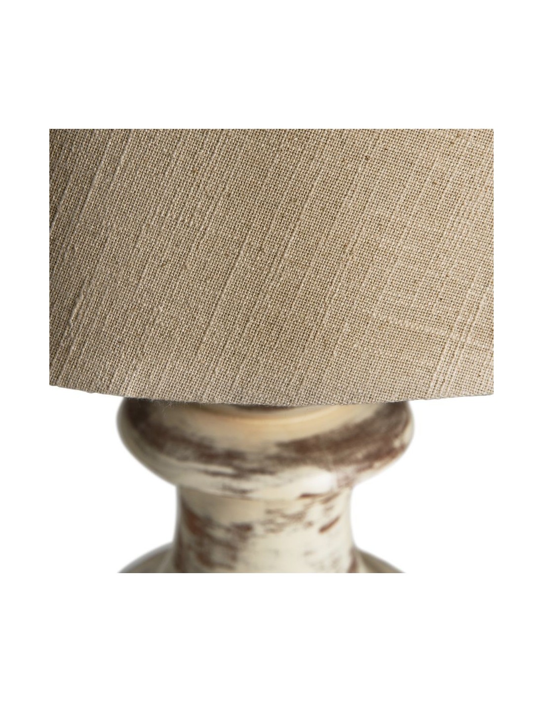 Lámpara De Sobremesa, En Color Blanco Decapado, De Estilo Provenzal. Fabricado En Madera De Mango, Combinado Con Algodón.