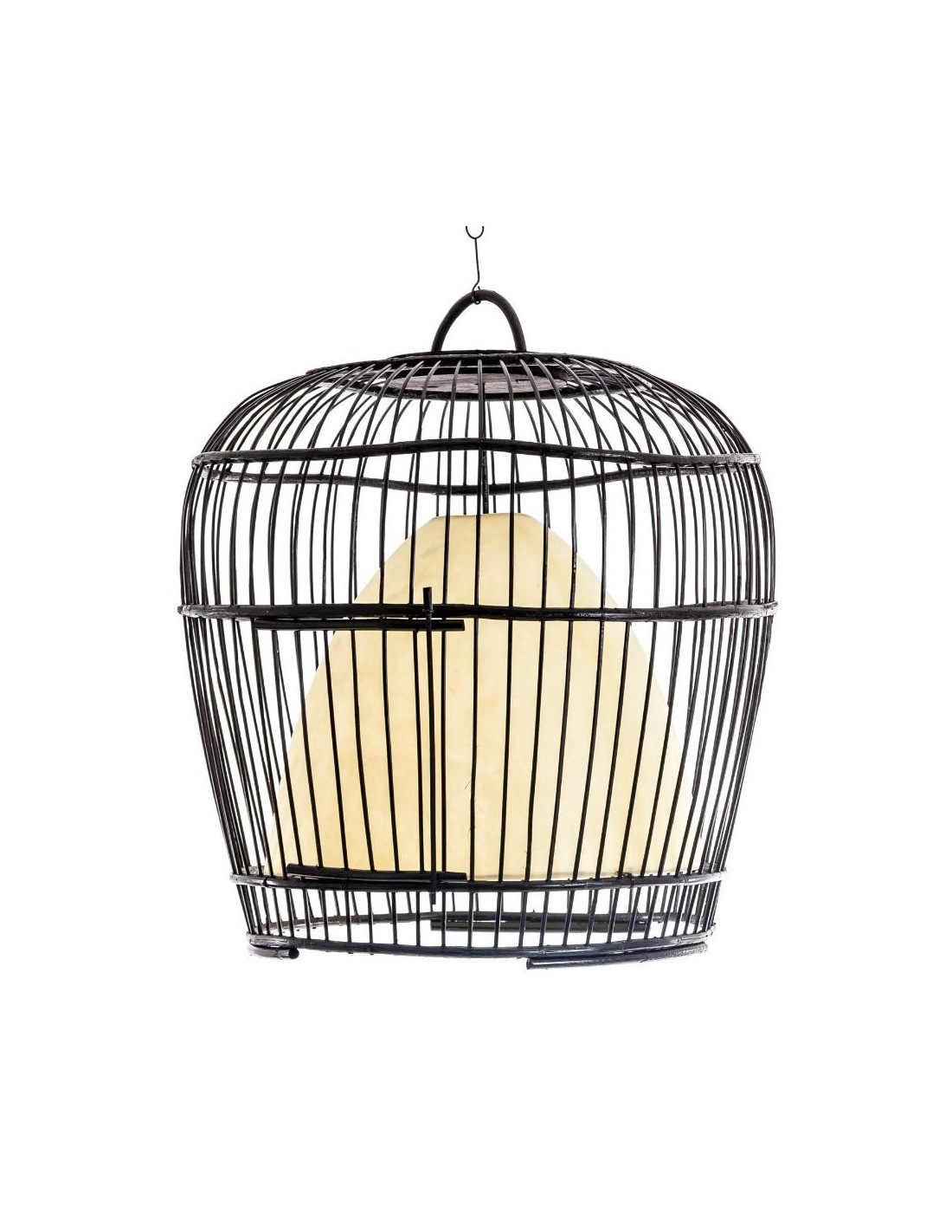 Lámpara De Techo, En Color Negra, De Estilo Provenzal. Fabricado En Resina, Combinado Con Bambú.