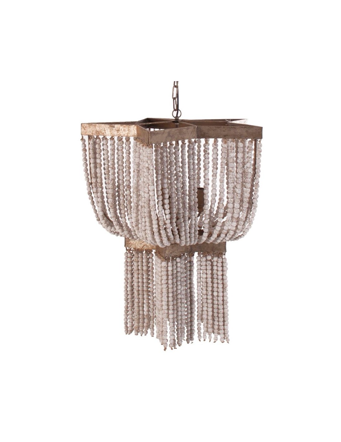 Lámpara De Techo, En Color Blanco/Oro Envejecido, De Estilo Provenzal. Fabricado En Hierro.