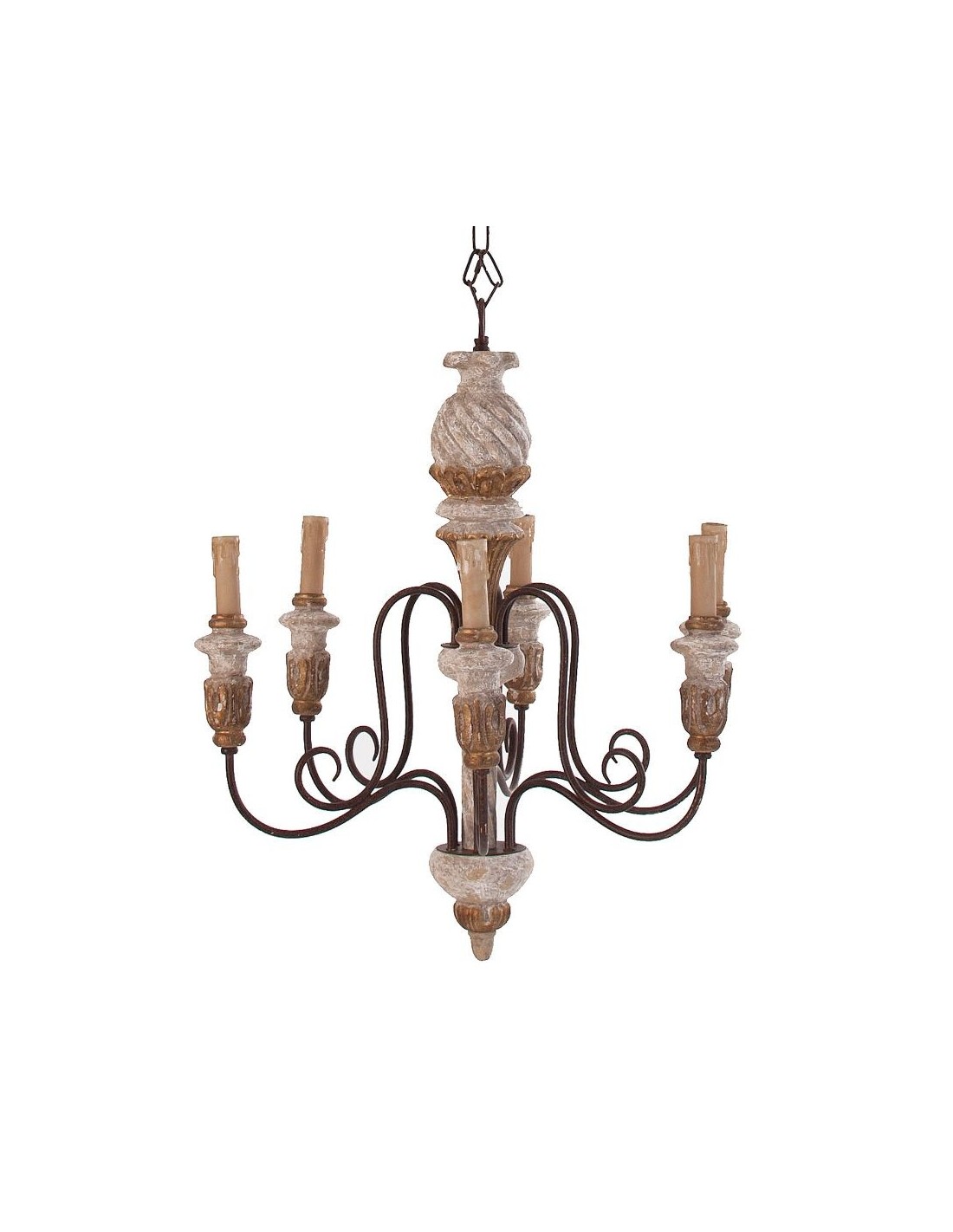 Lámpara De Techo, En Color Blanco/Marrón Envejecido, De Estilo Provenzal. Fabricado En Resina. Producto Desmontable.