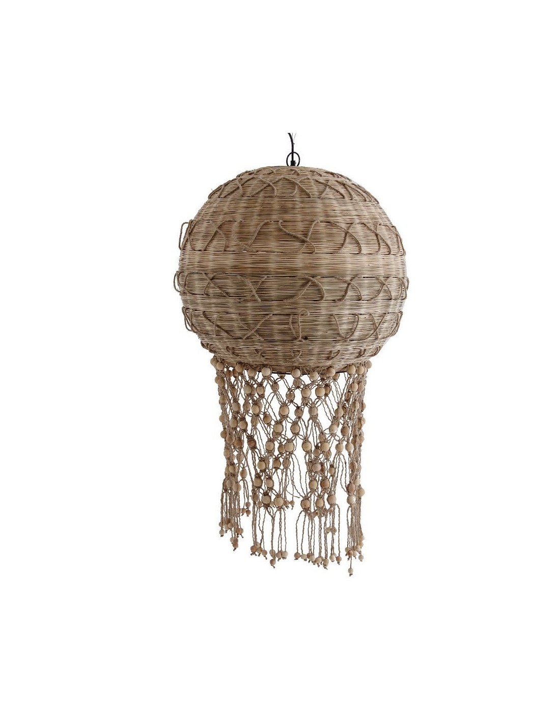Lámpara De Techo, En Color Natural, De Estilo Étnico. Fabricado En Bambú, Combinado Con Yute.