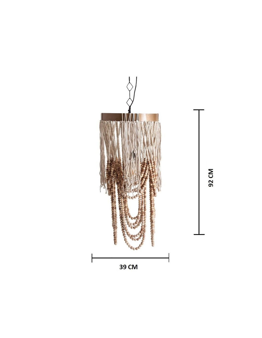 Lámpara De Techo, En Color Natural, De Estilo Étnico. Fabricado En Cuerda, Combinado Con Cuerda Y Hierro. 40% Hierro, 50% Madera, 10% Cuerda.