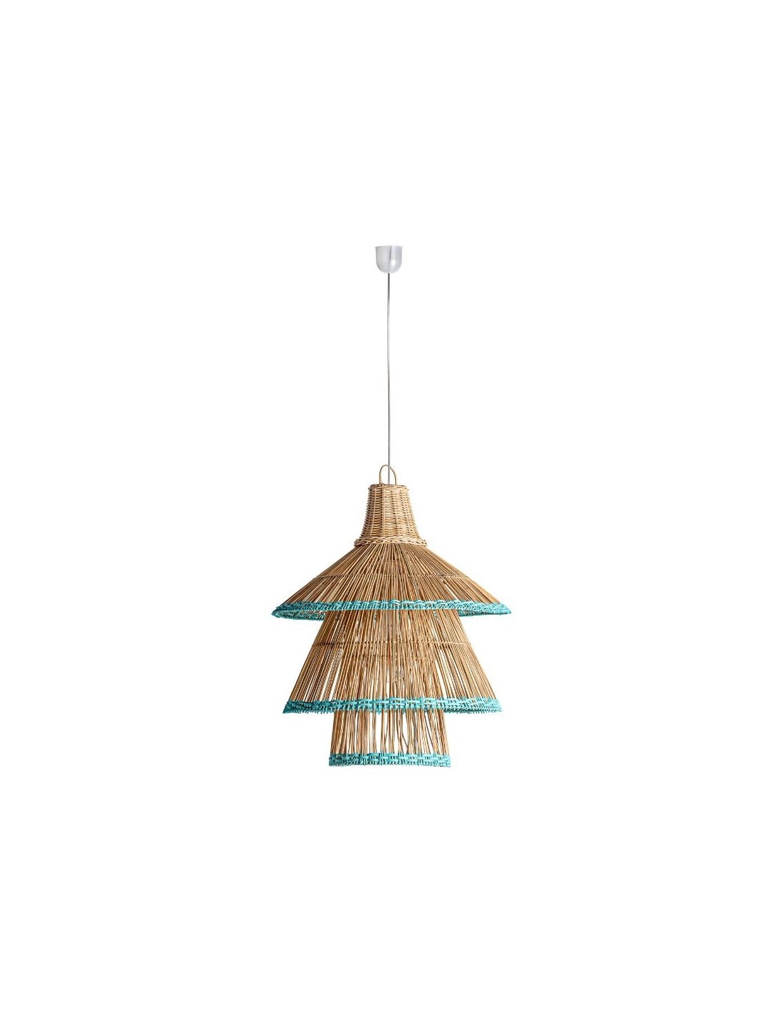 Lámpara De Techo, En Color Verde/Crema, De Estilo Contemporáneo. Fabricado En Ratán.