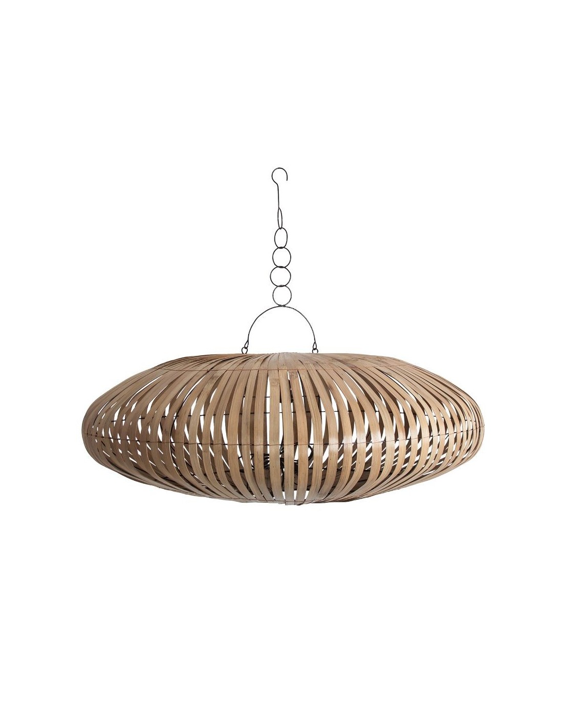 Lámpara De Techo Redonda, En Color Natural, De Estilo Contemporáneo. Fabricado En Bambú.