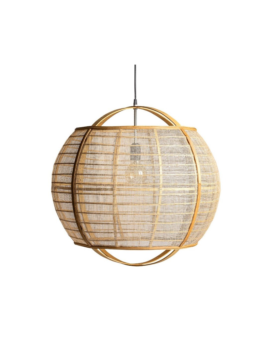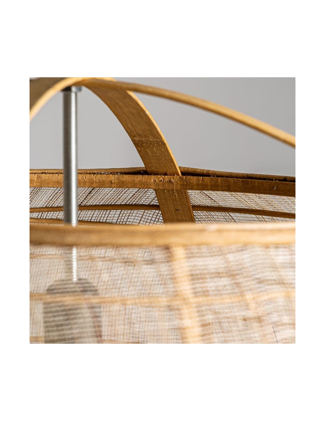 Lámpara De Techo, En Color Natural, De Estilo Contemporáneo. Fabricado En Bambú, Combinado Con Lino Y Hierro.