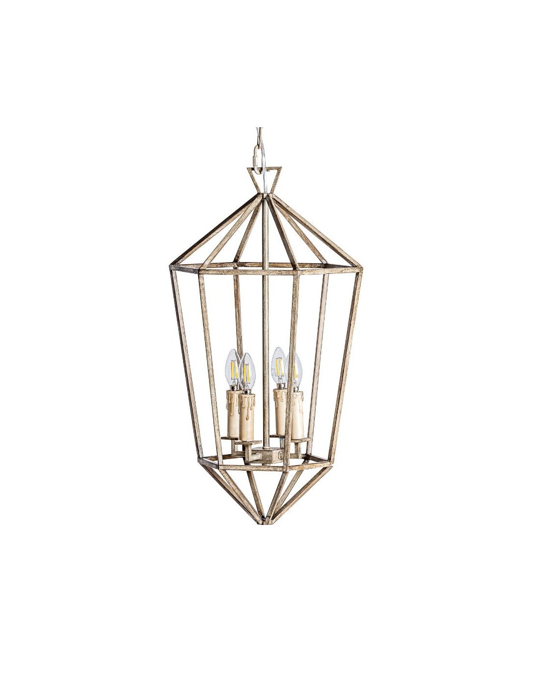 Lámpara De Techo, En Color Oro, De Estilo Art Deco. Fabricado En Resina, Combinado Con Hierro.