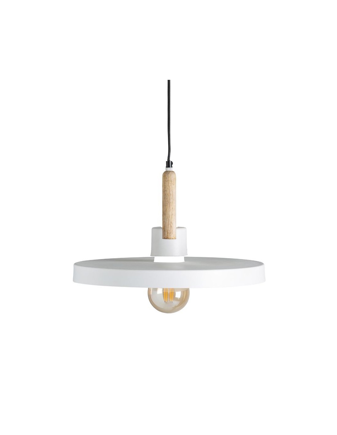Lámpara De Techo, En Color Blanco/Natural, De Estilo Art Deco. Fabricado En Hierro, Combinado Con Madera De Mango. Producto Extensible.