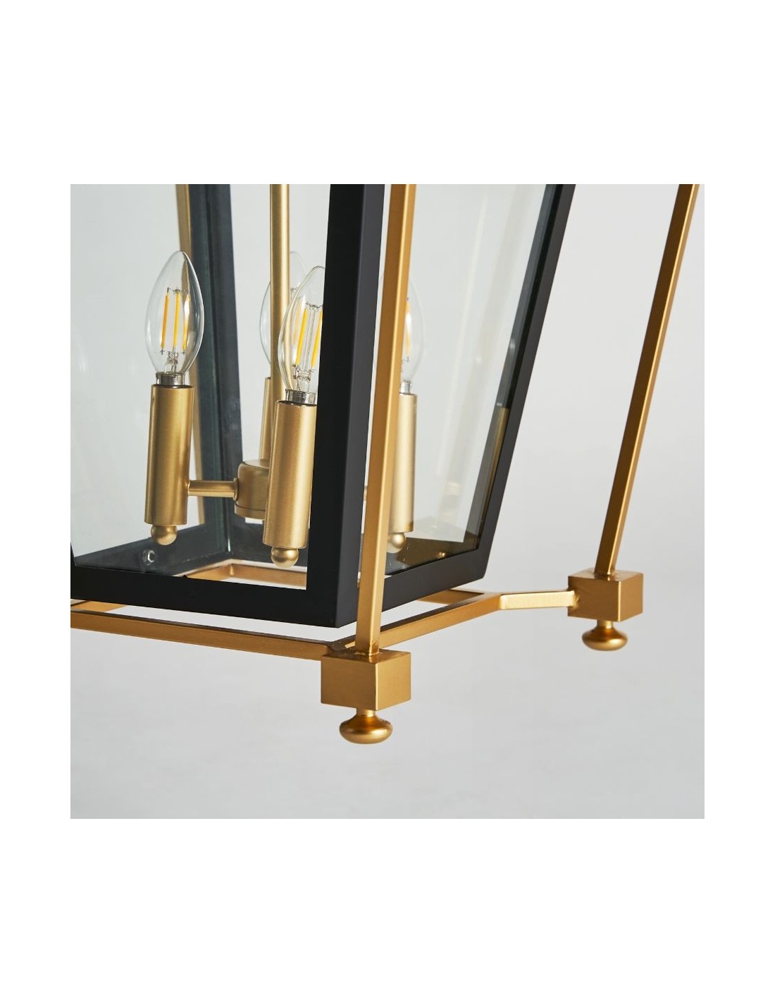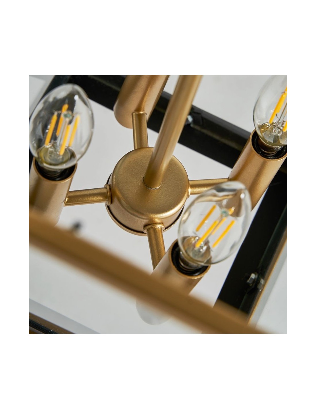 Lámpara De Techo, En Color Negro/Oro, De Estilo Art Deco. Fabricado En Hierro, Combinado Con Cristal.