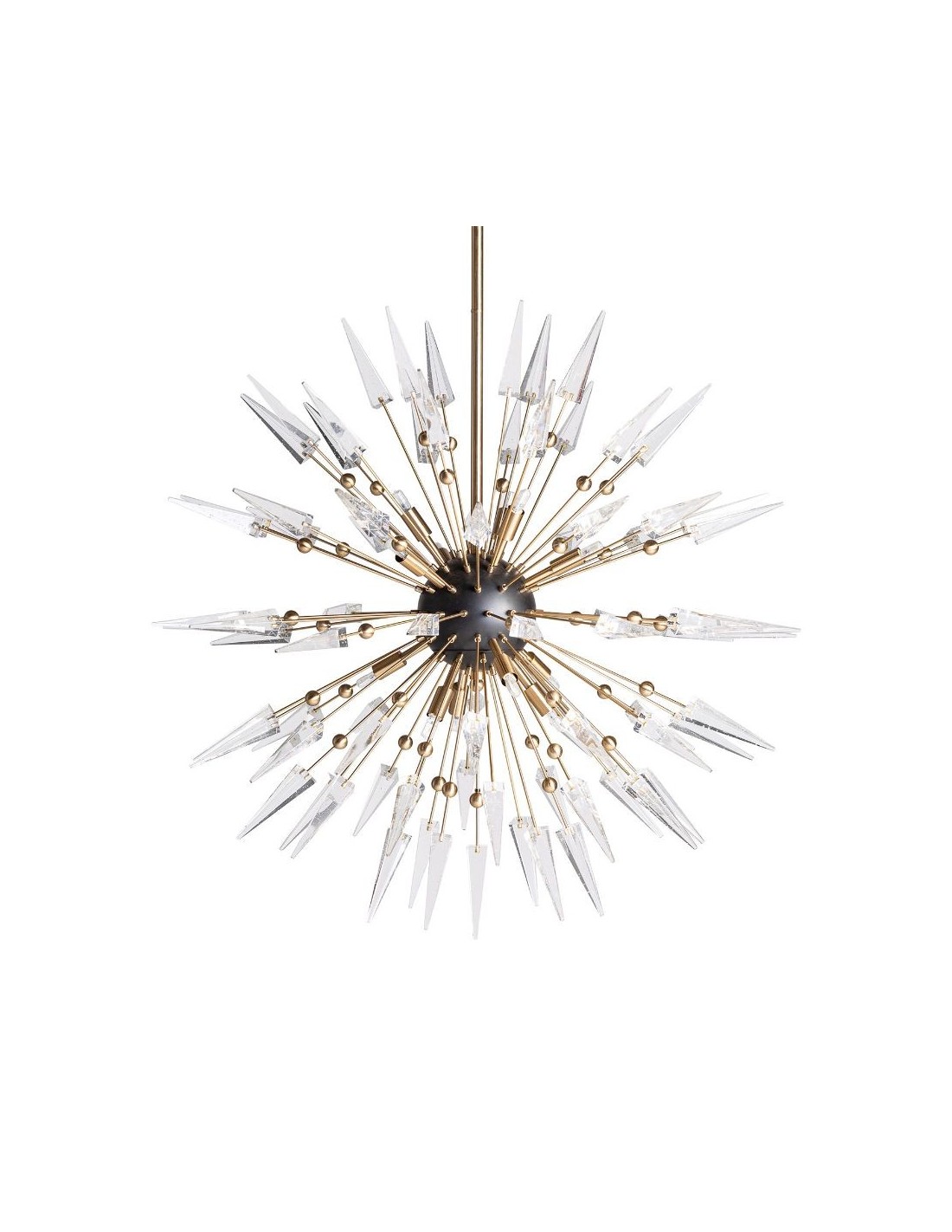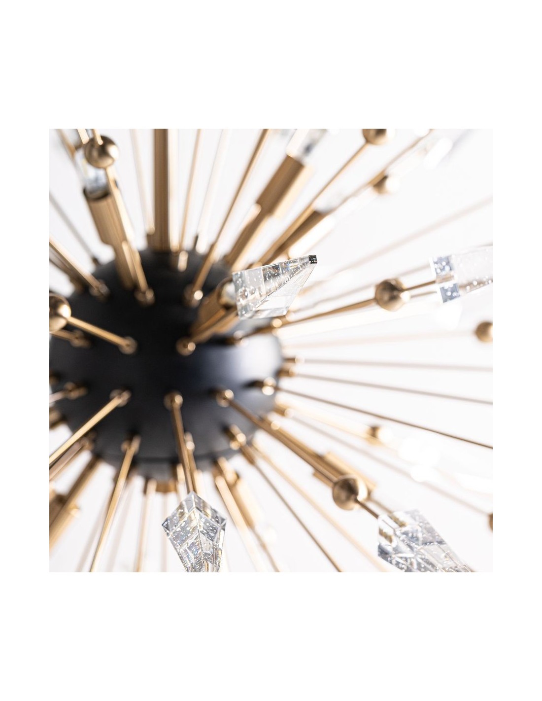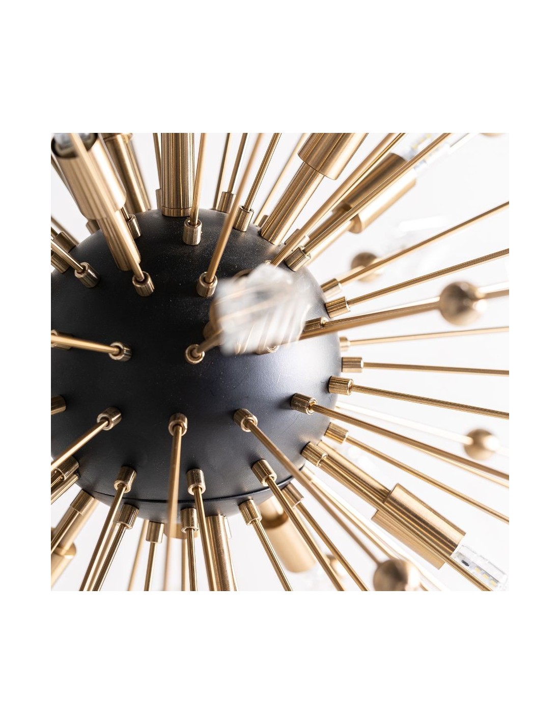 Lámpara De Techo, En Color Oro, De Estilo Art Deco. Fabricado En Hierro, Combinado Con Cristal.