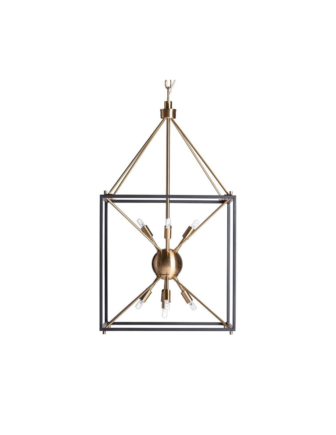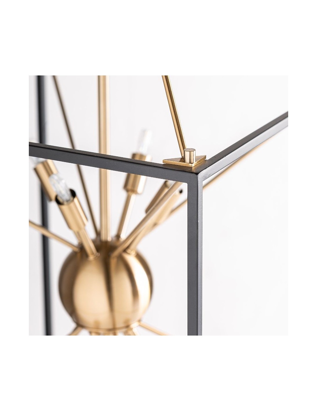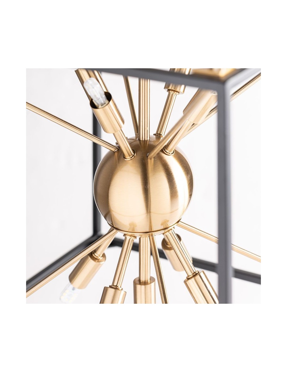 Lámpara De Techo, En Color Oro/Negro, De Estilo Art Deco. Fabricado En Hierro, Combinado Con Cristal.