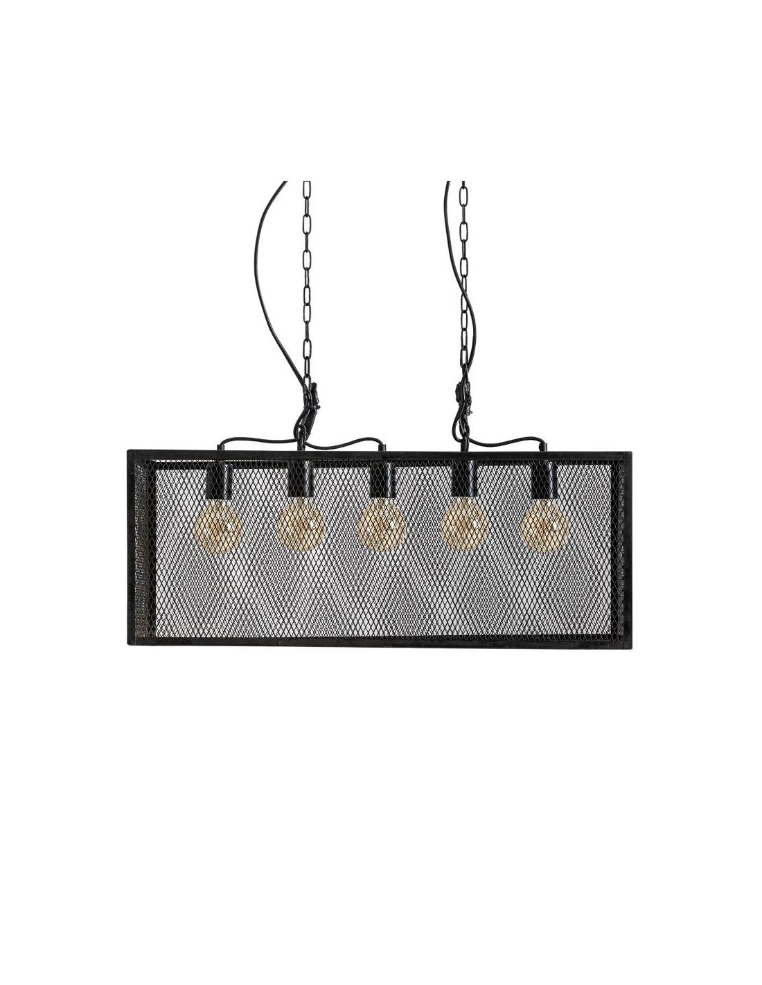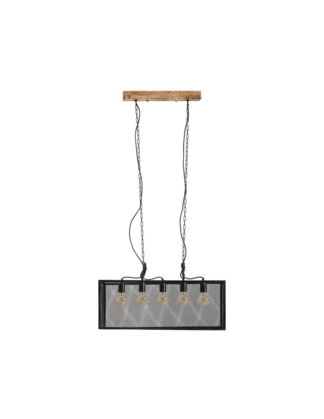Lámpara De Techo Carluke, En Color Negro/Natural, De Estilo Industrial. Fabricado En Hierro.