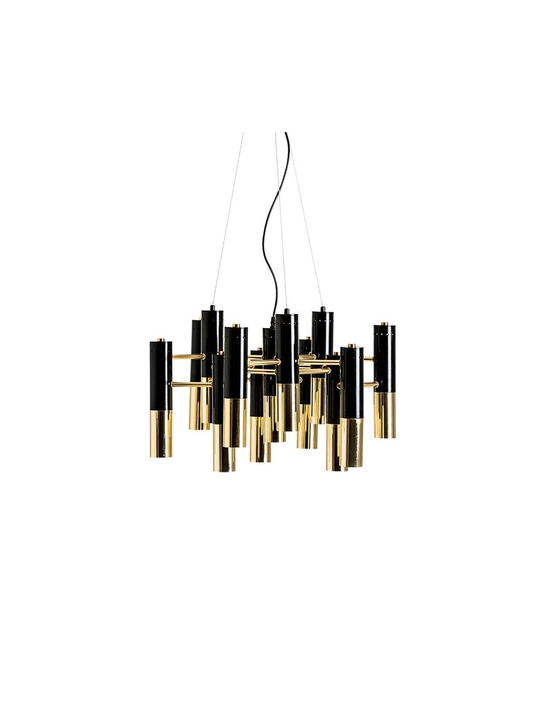 Lámpara De Techo Lena, En Color Negro/Oro, De Estilo Art Deco. Fabricado En Hierro.