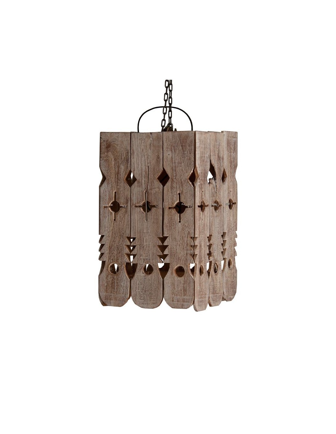 Lámpara De Techo Lioma, En Color Blanco Decapado, De Estilo Étnico. Fabricado En Madera De Mango.