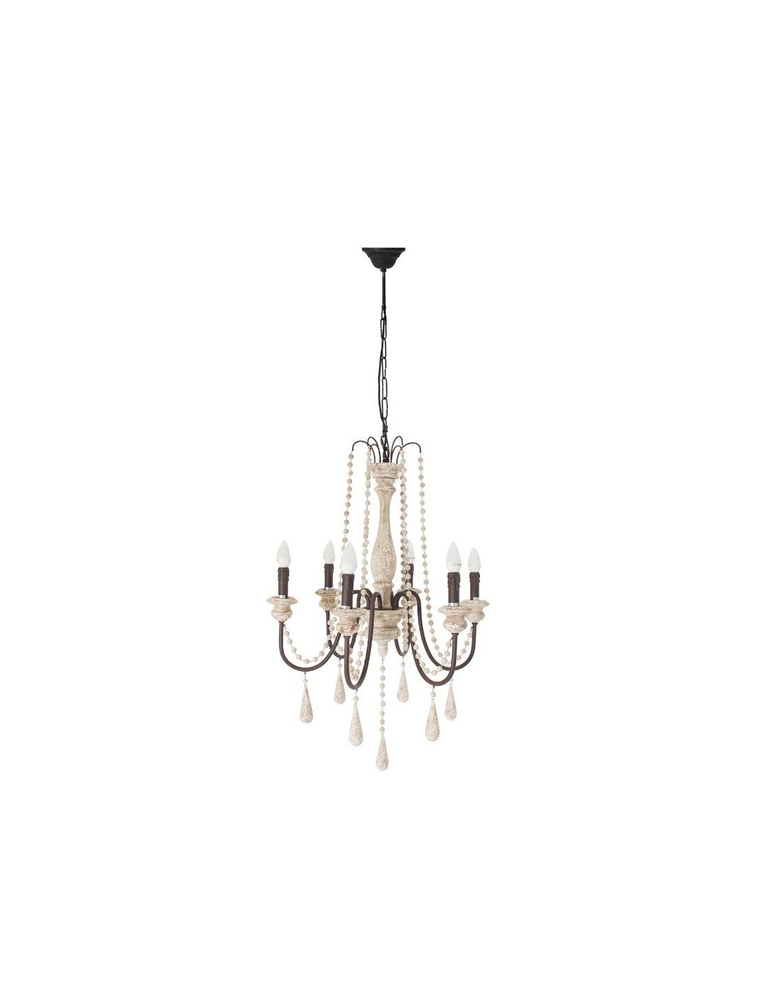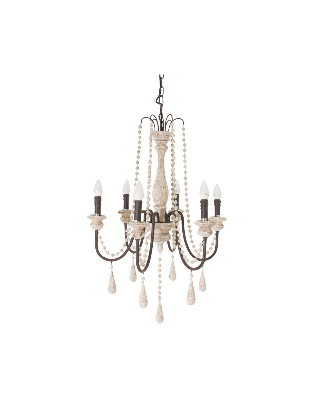 Lámpara De Techo Yomma, En Color Beige, De Estilo Provenzal. Fabricado En Hierro, Combinado Con Madera Eucalipto. Producto Desmontable.