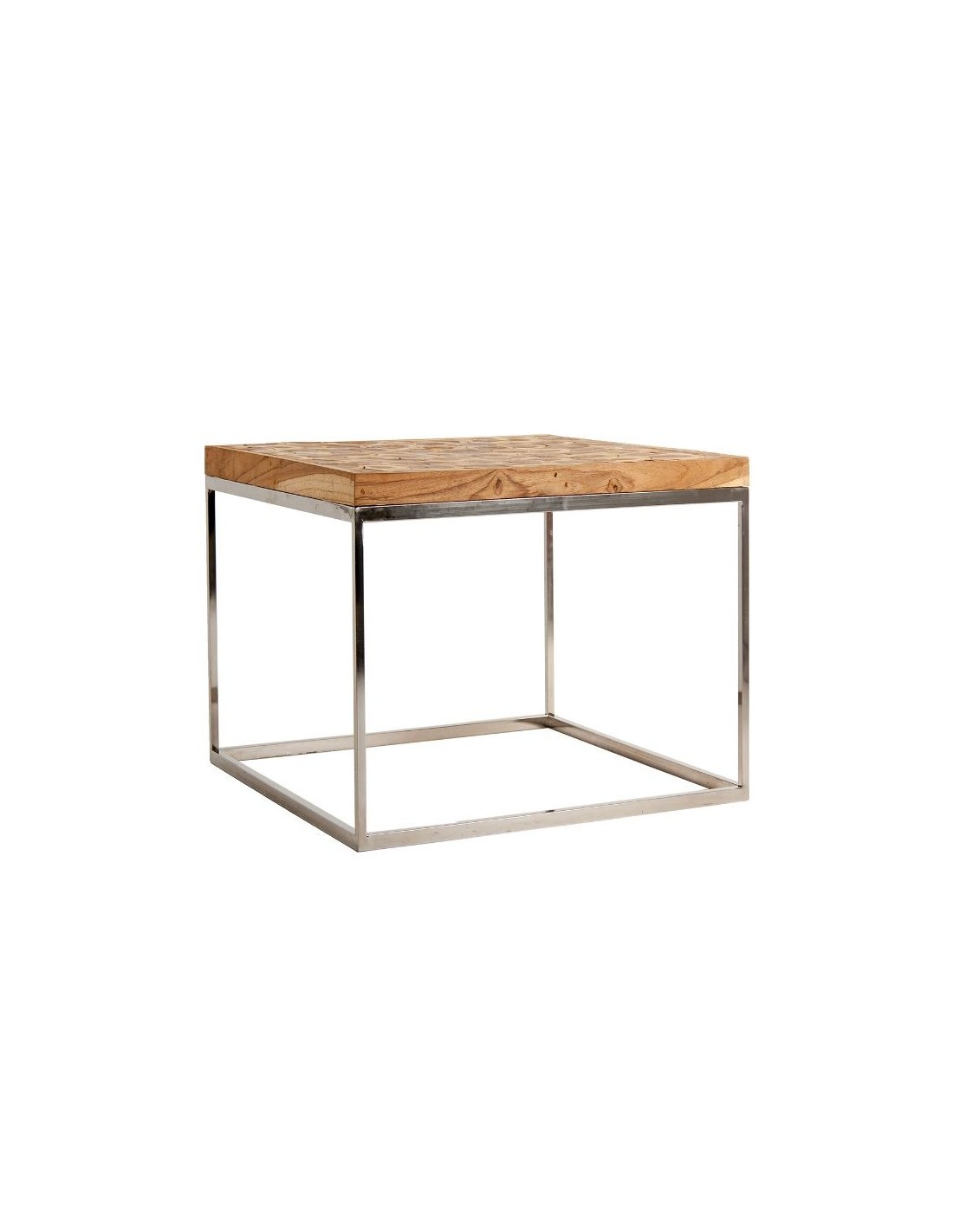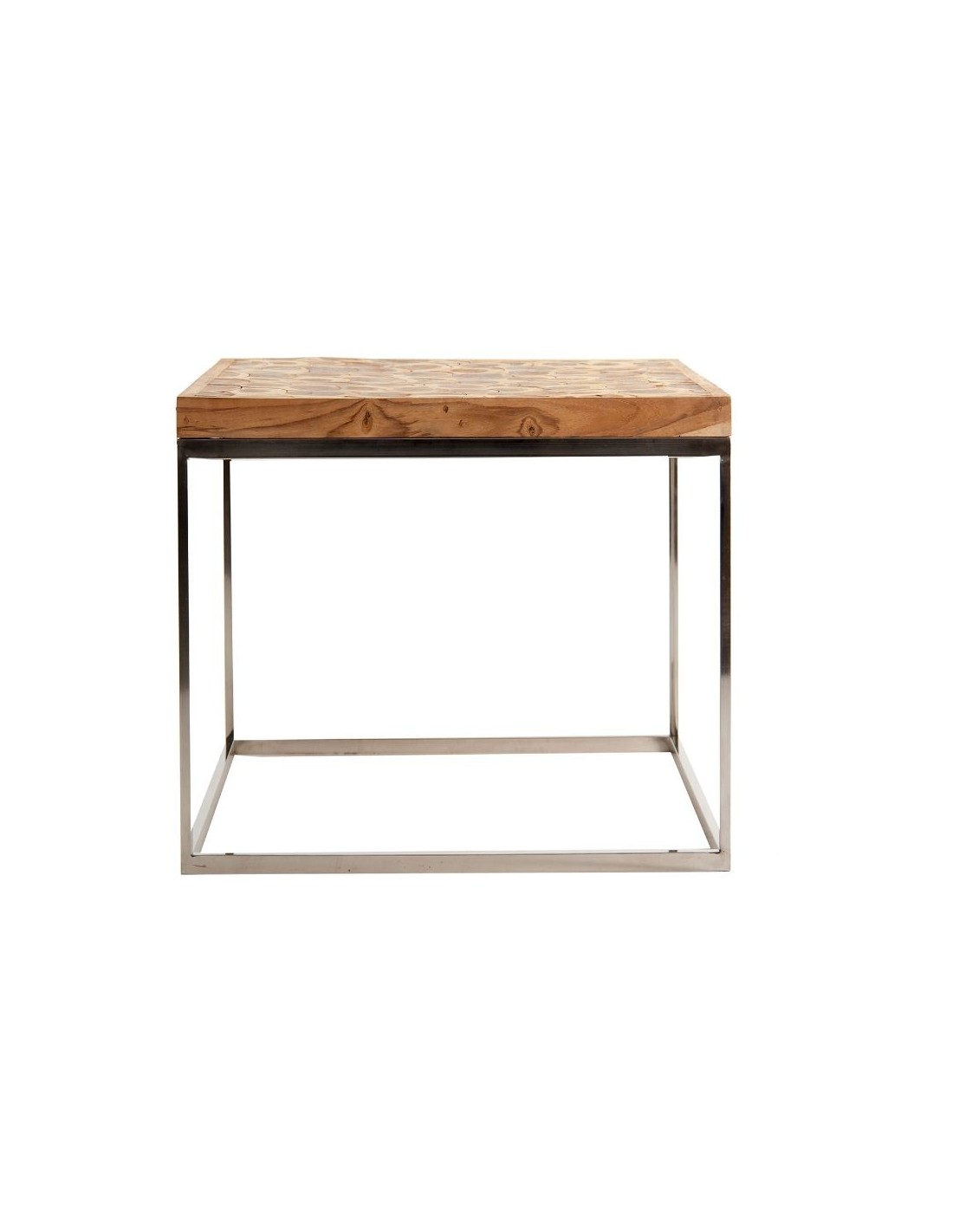 Mesa Auxiliar Berkan, En Color Natural/Plata Envejecido, De Estilo Contemporáneo. Fabricado En Madera Sonokeling, Combinado Con Hierro.