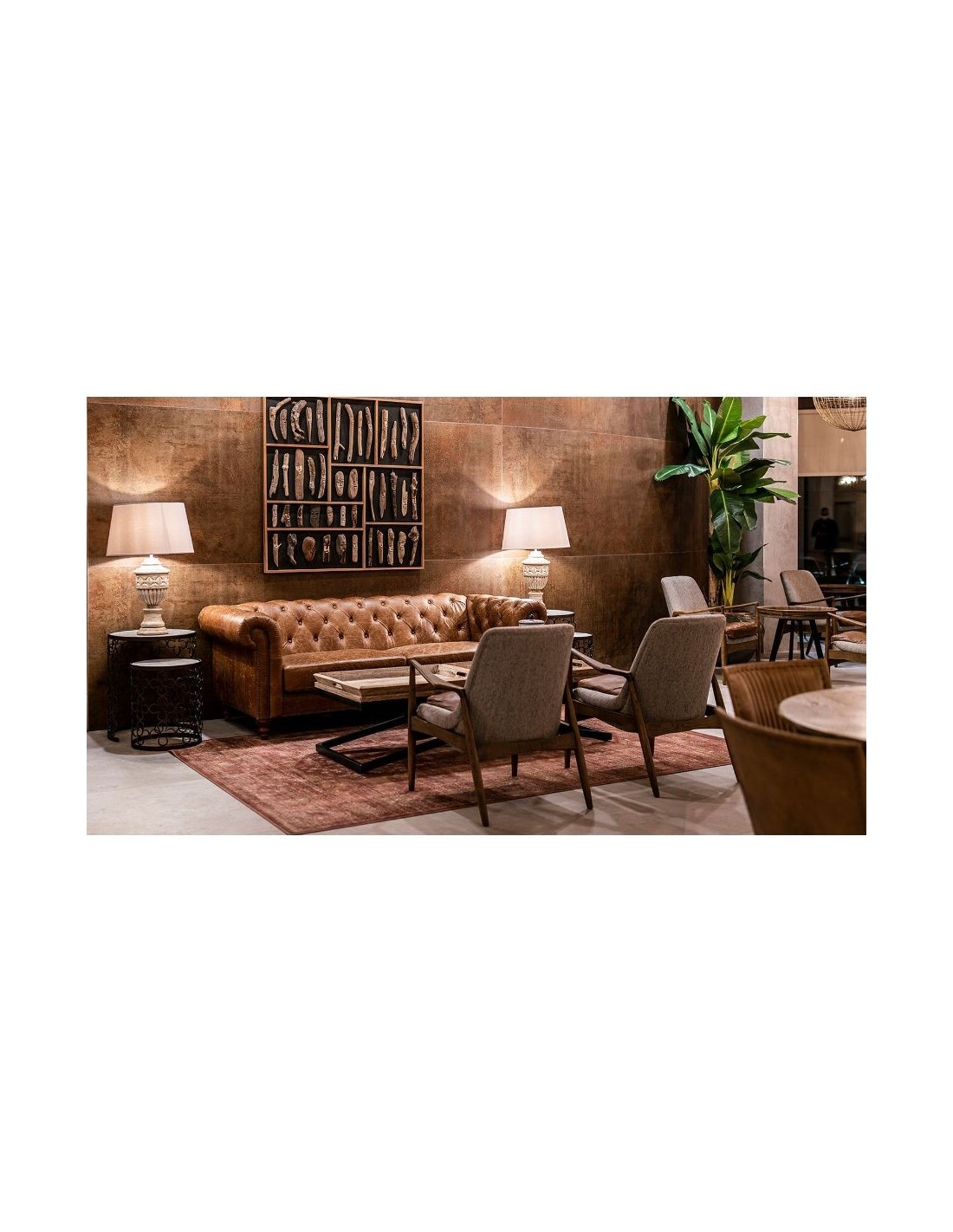 Además tenemos todo lo necesario para completar su salón, tanto sillas, cuadros, lámparas, focos, espejos, mesas bajas y de comedor, sillas, etc.